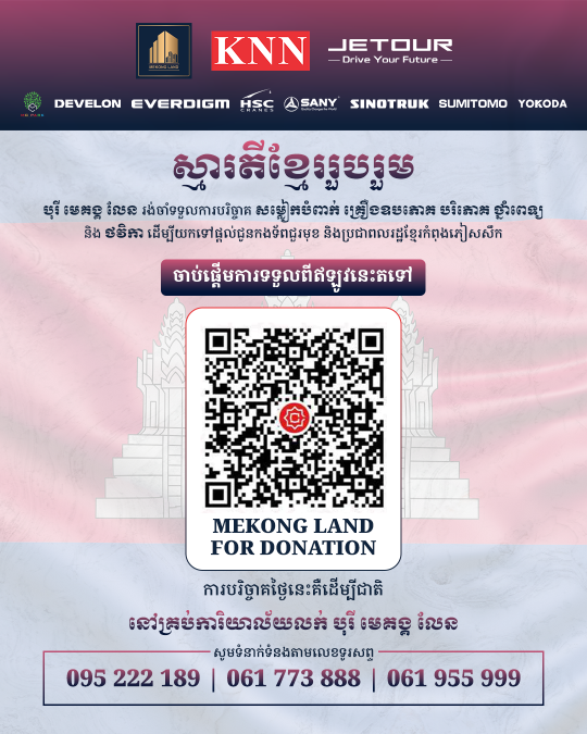 (ភ្នំពេញ)៖ ខ្មែររួមគ្នា ខ្មែរឈ្នះ! បុរី មេគង្គ លែន និងក្រុមហ៊ុនបុត្រសម្ព័ន្ធមានដូចជា ក្រុមហ៊ុន ខេ អិន អិន ខេមបូឌា និងផ្សារសហគមន៍ MC Park បង្កើតមូលនិធិដើម្បីប្រមូលសម្លៀកបំពាក់ គ្រឿងបរិភោគនិងឧបភោគ ថ្នាំពេទ្យ ថវិកា និងសម្ភារប្រើប្រាស់ផ្សេងៗសម្រាប់បន្ដការគាំទ្រទៅកាន់វីរកងទ័ព និងប្រជាពលរដ្ឋដែលបាននិងកំពុងភៀសសឹក។