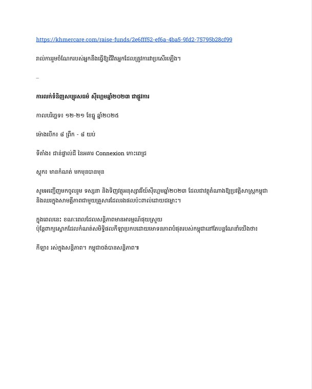 សម្រាប់វត្ថុអនុស្សាវរីយ៍ទាំងនេះរួមមានរូបតុក្កត្តាម៉ាស្កូត និងវត្ថុនានាផ្សេងទៀតដែលបង្ហាញពីមោទនភាព និងឧត្តមភាពរបស់កម្ពុជា អំឡុងពេលស៊ីហ្គេម ២០២៣ ដែលវត្ថុអនុស្សាវរីយ៍ទាំងនេះតំណាងឱ្យច្រើនជាងសមិទ្ធផលកីឡា ។ ជាមួយពេលវេលានៃការលក់ទំនិញ ដើម្បីសប្បុរសធម៌នេះ គឺចាប់ពីថ្ងៃទី១២ ដល់ថ្ងៃទី២១ ខែធ្នូ ឆ្នាំ២០២៥ ចាប់ពីម៉ោង ៨ព្រឹក ដល់ម៉ោង ៨យប់ នៅទីតាំងជាន់ផ្ទាល់ដី នៃអាគារ Connexion កោះពេជ្រ ជាមួយនឹងស្តុកមាកំណត់ ។