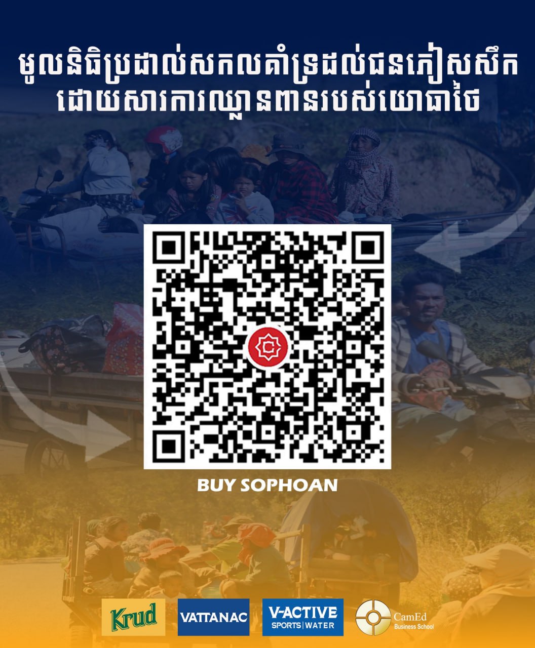 (ភ្នំពេញ)៖ ស្របពេលយោធាថៃ បាននឹងកំពុងឈ្លានពាន ហើយបាញ់ប្រហារទាំងកំរោលមកលើកងកម្លាំង និងជនស៊ីវិល ប្រជាពលរដ្ឋខ្មែរ ទូទាំងប្រទេសបាននឹងកំពុងពួតដៃសាមគ្គីគ្នា ក្នុងនាមសមរភូមិក្រោយ ដើម្បីជួយគាំទ្រដល់សមរភូមិមុខ ក្នុងនោះសហព័ន្ធកីឡាប្រដាល់សកលកម្ពុជា ក៏បានរៀបចំលក់ឯកសណ្ឋានកីឡា ដើម្បីកៀគរមូលនិធិជួយគាំទ្របន្ថែម ដល់ពលរដ្ឋភៀសសឹក និងវីរកងទ័ពជួរមុខ ដែលកំពុងឈរការពារបូរណភាពទឹកដីដ៏អង់អាចក្លាហានផងដែរ។