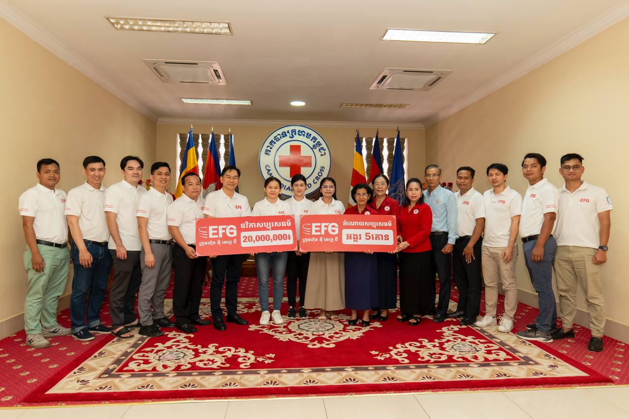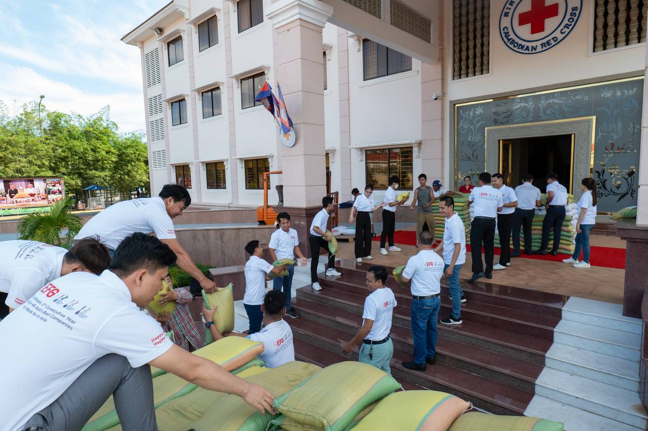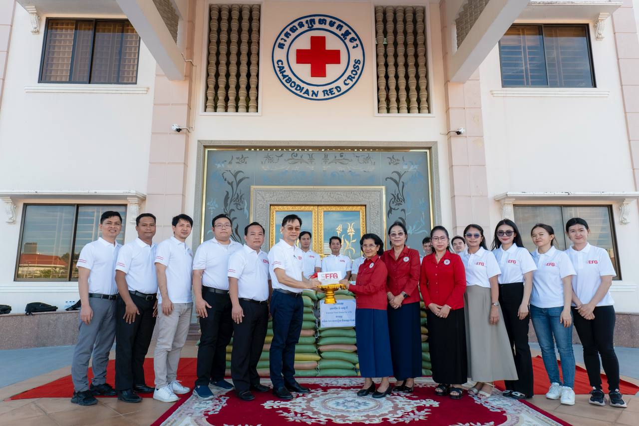 (ភ្នំពេញ)៖ ក្រុមហ៊ុន អ៉ី អេហ្វជី កម្ពុជា ថ្ងៃទី១៦ ខែធ្នូ ឆ្នាំ២០២៥ បានបន្តការគាំទ្រសហគមន៍ តាមរយៈសកម្មភាពមនុស្សធម៌ ដោយបានធ្វើការឧបត្ថម្ភជំនួយទៅកាន់កាកបាទក្រហមកម្ពុជា ដើម្បីជួយដល់សហគមន៍ និងប្រជាពលរដ្ឋខ្មែរ ដែលកំពុងតែរងផលប៉ះពាល់ និងរងគ្រោះដោយសារភាពតានតឹងនៅតាមបណ្ដោយព្រំដែន។ ការបរិច្ចាគនេះរួមមានអង្ករ ៥តោន និងថវិកាចំនួន ២០,០០០,០០០រៀល ដែលត្រូវបានប្រគល់ជូននៅទីស្នាក់ការកណ្ដាលកាកបាទក្រហមកម្ពុជា ក្នុងរាជធានីភ្នំពេញ។