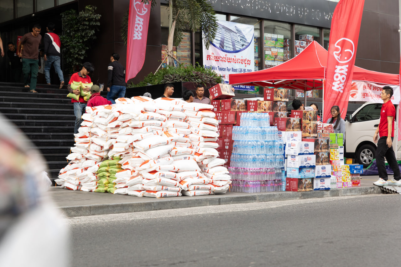 ក្រៅពីអំណោយ ដែលទទួលបានមកពីសប្បុរសជន ក្រុមហ៊ុនWOWNOW ក៏បានរៀបចំសម្ភារៈប្រើប្រាស់ និងអាហារបន្ថែមសរុបជាង ៨ តោនមានដូចជា៖