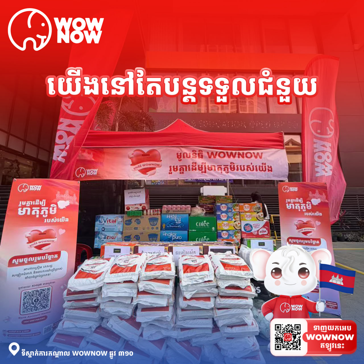 (ភ្នំពេញ)៖ ក្រុមហ៊ុន WOWNOW នាថ្ងៃទី១០ ដល់ថ្ងៃទី១៣ ខែធ្នូ ឆ្នាំ២០២៥ បានបើកមូលនិធិទទួលអំណោយជាសម្ភារៈប្រើប្រាស់ និងគ្រឿងឧបភោគបរិភោគពីសប្បុរសជននានា ដើម្បីចែកជូនបងប្អូនប្រជាពលរដ្ឋ ដែលជាជនភៀសសឹករងគ្រោះដោយការឈ្លានពានពីសំណាក់កងទ័ពសៀម។ នៅថ្ងៃទី១៤ ខែធ្នូឆ្នាំ២០២៥ ក្រុមការងារ WOWNOW បាននាំយកនូវអំណោយរបស់សប្បុរសជនទៅចែកជូនប្រជាពលរដ្ឋដែលជាជនភៀសសឹក ក្នុងខេត្តសៀមរាប។