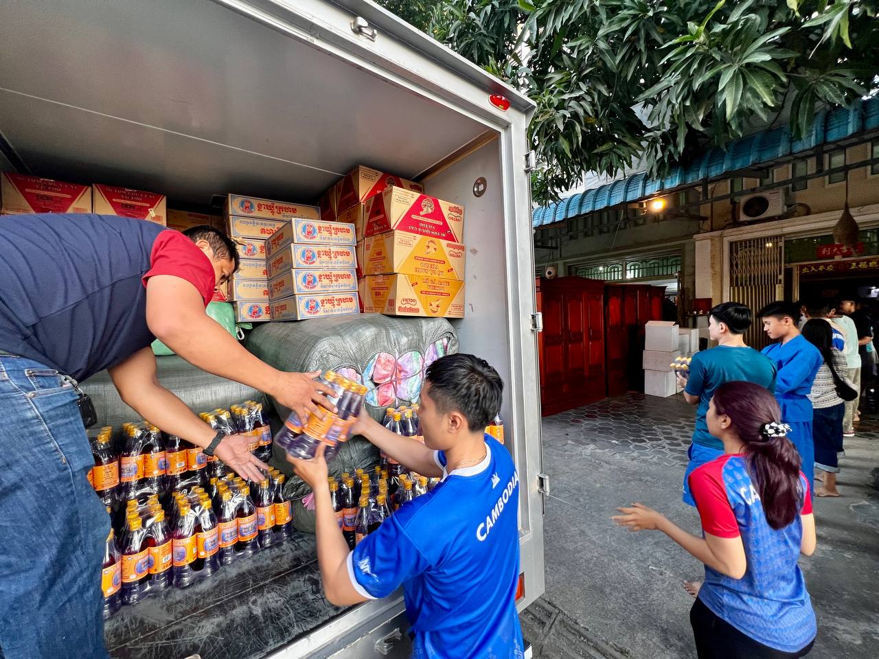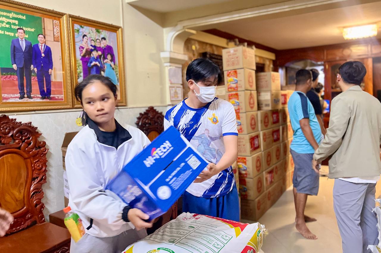 (ភ្នំពេញ)៖ ថ្នាក់ដឹកនាំ គ្រូបង្វឹក និងកីឡាករ-កីឡាការិនីកីឡាម្ពុជាវ៉ូវីណាមក រួមជាមួយយុវជន-យុវនារីជាច្រើន នៅល្ងាចថ្ងៃទី១៩ ខែធ្នូ ឆ្នាំ២០២៥ នេះ បានរួមគ្នារៀបចំសម្ភារ និងជំនួយសប្បុរសធម៌ ដែលទទួលបានការបរិច្ចាគពីគ្រួសារសប្បុរសជននានា តាមរយៈលោក អ៊ូ រតនា ប្រធានសហព័ន្ធកីឡាវ៉ូវីណាកម្ពុជា សម្រាប់ត្រៀមនាំយកទៅជួយដល់ជនភៀសសឹក ដែលរងគ្រោះដោយសារការឈ្លានពាន និងការបាញ់ប្រហារទាំងកំរោលពីសំណាក់យោធាថៃ មកលើកងកម្លាំង ព្រមទាំងជនស៊ីវិលកម្ពុជា។