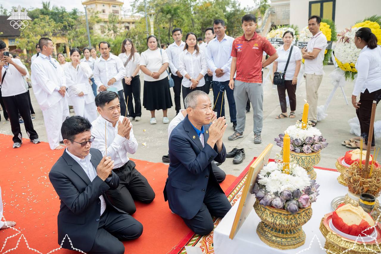 (ភ្នំពេញ)៖ លោក វ៉ាត់ ចំរើន អគ្គលេខាធិការ តំណាងលោកអគ្គបណ្ឌិតសភាចារ្យ អូន ព័ន្ធមុនីរ័ត្ន ឧបនាយករដ្ឋមន្ដ្រី និងជាប្រធានសហព័ន្ធកីឡាការ៉ាតេកម្ពុជា នៅព្រឹកថ្ងៃទី២២ ខែធ្នូនេះ បានដឹកនាំមន្ដ្រី និងកីឡាករ-កីឡាការិនីមួយចំនួន ចូលរួមពិធីបុណ្យសព និងគោរពវិញ្ញាណក្ខន្ធវីរៈកងទ័ព ប៊ុង តុងធៀន ដែលជាកីឡាករការ៉ាតេឆ្នើមកម្ពុជាមួយរូប ដែលបានពលីក្នុងសមរភូមិការពារបូរណភាពទឹកដីពីការឈ្លានពានរបស់យោធាថៃ។