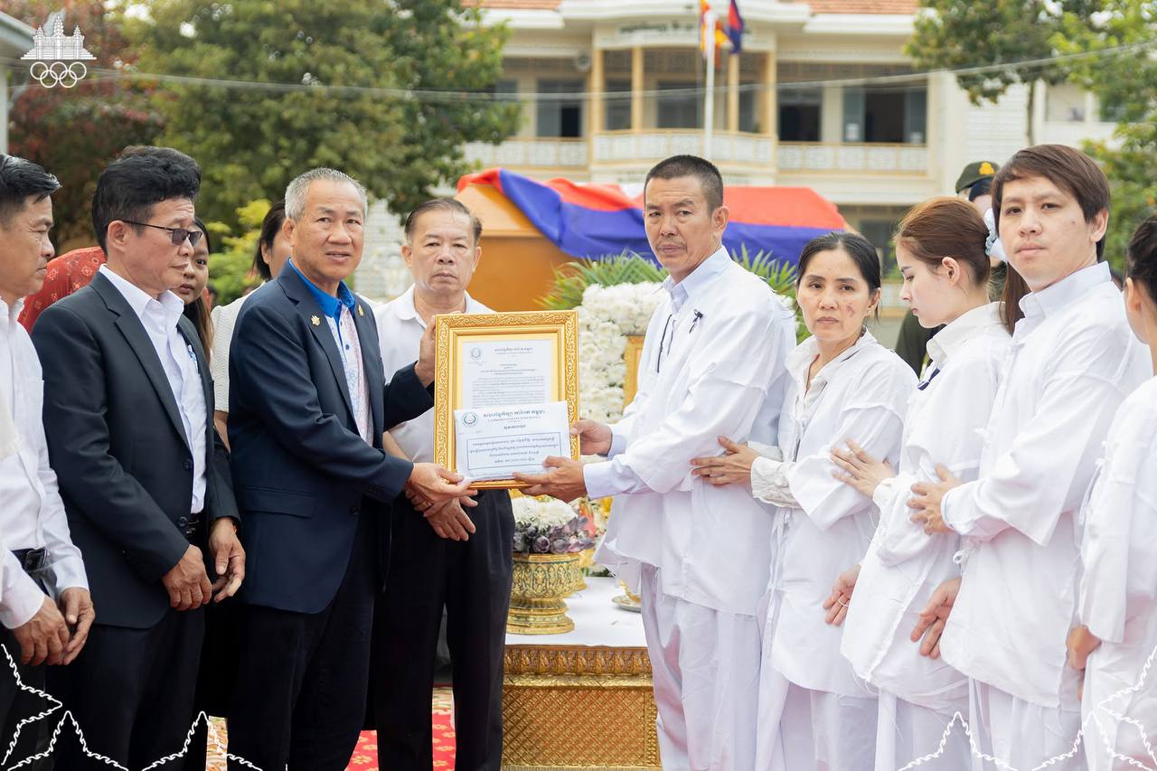 ក្នុងវេលាប្រកបដោយសមានទុក្ខនោះ ក្នុងនាមថ្នាក់ដឹកនាំសហព័ន្ធ លោកបានពាំនាំនូវលិខិត និងប្រសាសន៍ចូលរួមរំលែកទុក្ខដ៏ក្រៀមក្រំបំផុតពីលោកឧបនាយករដ្ឋមន្ដ្រី អូន ព័ន្ធមុនីរ័ត្ន រួមជាមួយថវិកាចំនួន ១០លានរៀល ជូនដល់ក្រុមគ្រួសារនៃសពផងដែរ។