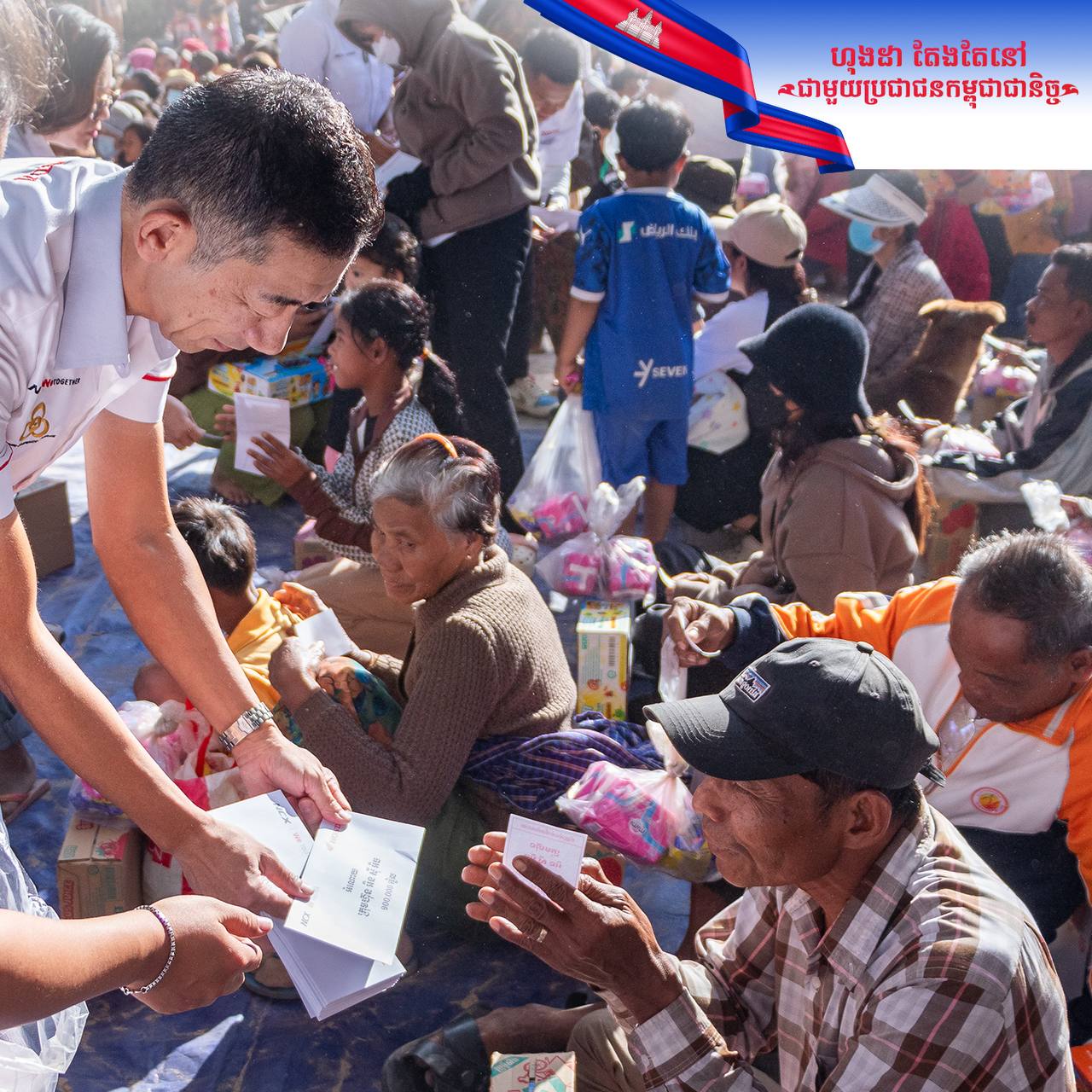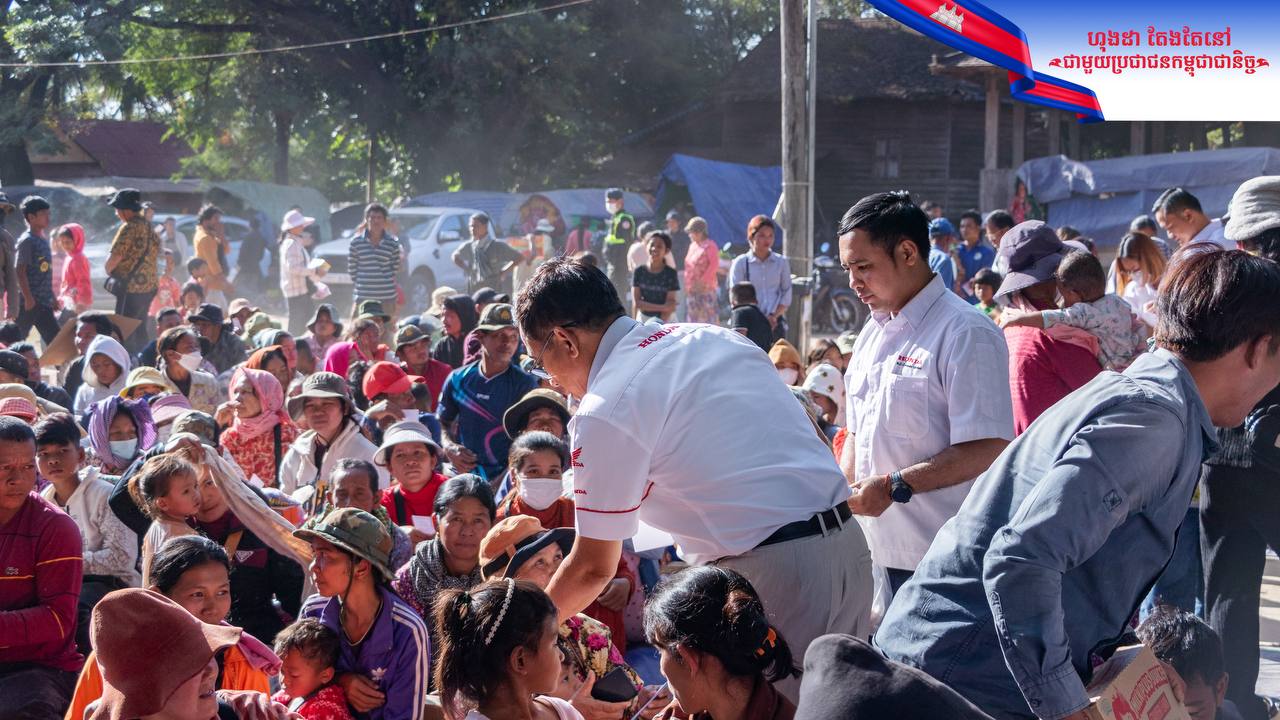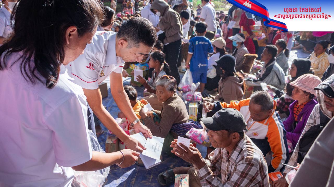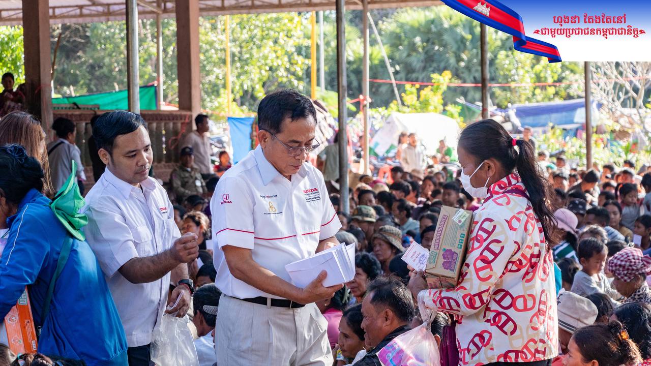 (សៀមរាប)៖ ថ្នាក់ដឹកនាំនៃក្រុមហ៊ុនហុងដា អិន ស៊ី អិច (Honda NCX) បានចាត់តំណាងរួមទាំងបុគ្គលិក កម្មករ និងក្រុមការងារនាំយកអំណោយជាសម្ភារៈ បរិក្ខារ និងថវិកាជាលើកទី២ ដែលជាសកម្មភាពផ្តល់ជំនួយ ជូនដល់បងប្អូនប្រជាជនកម្ពុជា ចំនួន ៣,៧៨៥គ្រួសារ ស្មើរនឹង ១១,៣៥៥ នាក់ ដែលជាជនភៀសសឹក កំពុងស្នាក់អាស្រ័យបណ្តោះអាសន្ន នៅក្នុងមណ្ឌលសុវត្ថិភាពសិ្ថតនៅក្នុងខេត្តសៀមរាប កាលពីថ្ងៃទី១៨ ខែធ្នូ ឆ្នាំ២០២៥នេះ។