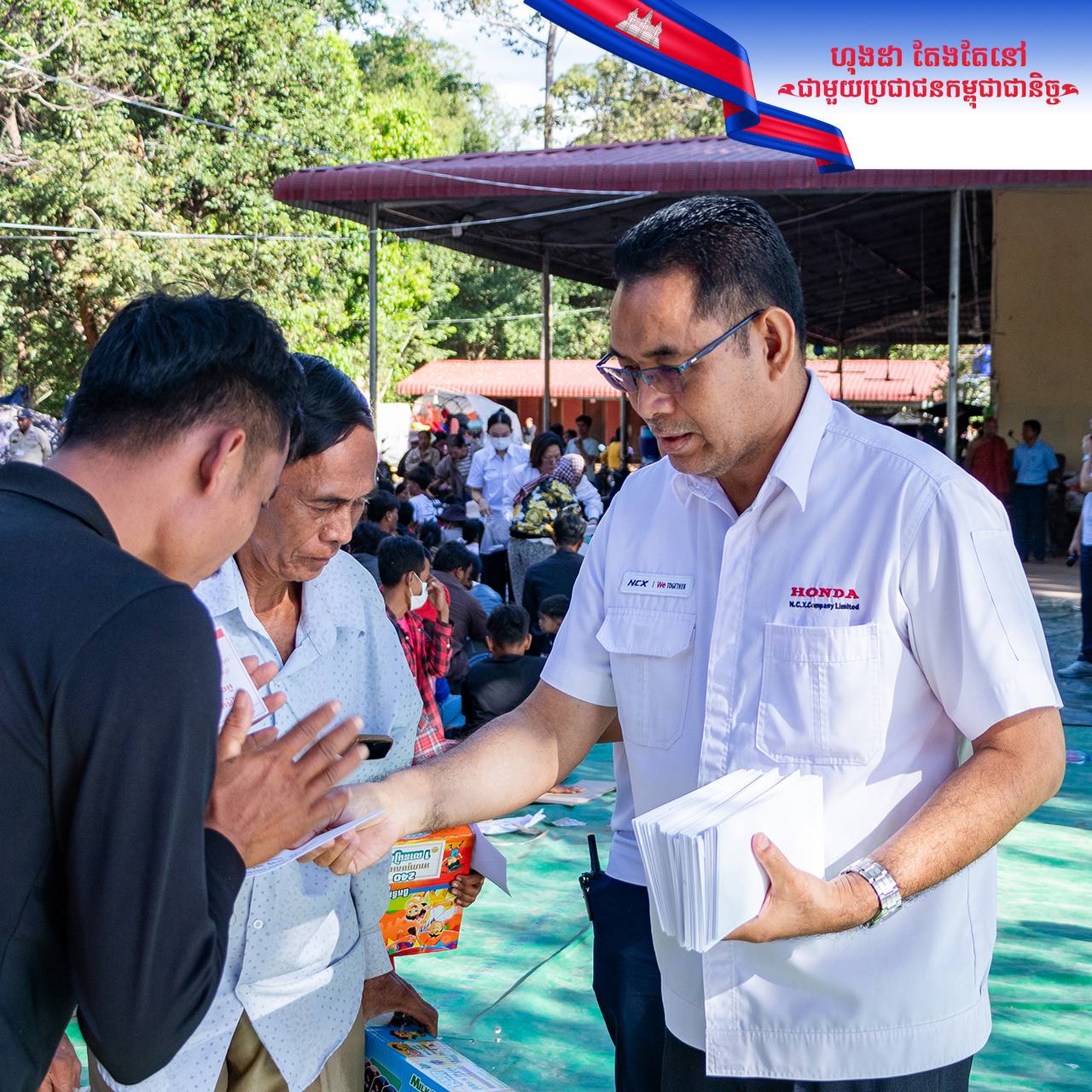 លោក ណាអូអាគិ អ៊ិស្សិកាវ៉ា (Mr. Naoaki Ishikawa) តំណាងក្រុមហ៊ុន Honda NCX បានលើកឡើងនៅក្នុងកម្មវិធីនេះថា «ពួកយើងទាំងអស់គ្នាបានដឹងយ៉ាងច្បាស់ថា សន្តិភាពពិតជាមានសារៈសំខាន់ណាស់ សម្រាប់ប្រជាជនកម្ពុជាទាំងមូល។ ដូច្នេះហើយខ្ញុំសង្ឃឹមថា ភាពលំបាកដែលបងប្អូនជួបប្រទះនាពេលនេះ ប្រាកដជាអាចបញ្ចប់នៅថ្ងៃណាមួយមិនខាន។ ពួកយើងជាបុគ្គលិក កម្មករនៃក្រុមហ៊ុន ហុងដា អិន ស៊ី អិច នឹងបន្តផ្តល់ការឧបត្ថម្ភគាំទ្រតាមលទ្ធភាព ដែលអាចធ្វើទៅបាន រហូតដល់បងប្អូនទាំងអស់គ្នាបានវិលត្រឡប់ទៅរកជីវភាពធម្មតាវិញ»។
