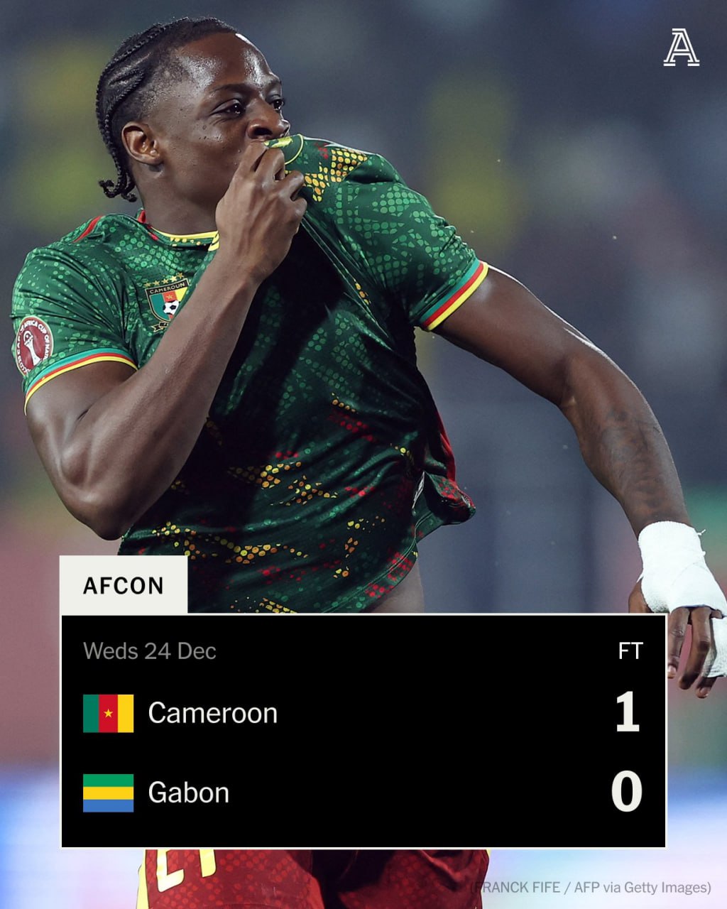 (អាហ្វ្រិក)៖ ការស៊ុតបញ្ចូលទីមួយគ្រាប់ដំបូងរបស់ Karl Etta Eyong បានជួយឱ្យក្រុមជម្រើសជាតិកាំមេរ៉ូន ដែលជាម្ចាស់ពានប្រចាំតំបន់ ៥សម័យកាលមួយនេះ យកឈ្នះក្រុមហ្គាប៉ុង ពីការប្រកួតបើកឆាកវគ្គចែកពូលពានរង្វាន់ Africa Cup of Nations 2025 ប្រចាំពូល F ។