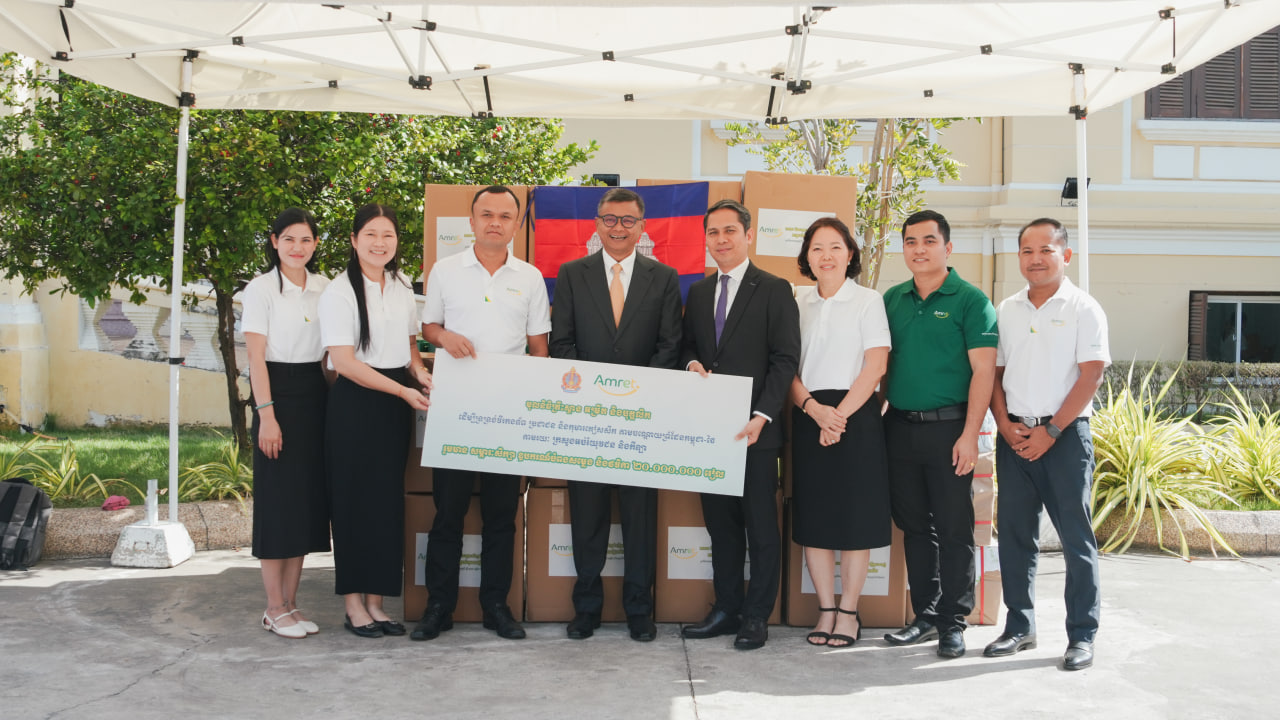(ភ្នំពេញ)៖ នៅថ្ងៃទី០៦ ខែមករា ឆ្នាំ២០២៦នេះ គ្រឹះស្ថានមីក្រូហិរញ្ញវត្ថុ អម្រឹត បានប្រគល់ជូននូវមូលនិធិសប្បុរសធម៌រួមមាន សម្ភារៈសិក្សា ឧបករណ៍បំពងសម្លេង និងថវិកាចំនួន ២០.០០០.០០០ រៀល ជូនក្រសួងអប់រំ យុវជន និងកីឡា ដើម្បីទ្រទ្រង់វីរកងទ័ព និងឧបត្ថម្ភបន្តជូនប្រជាជនភៀសសឹក និងប្អូនៗសិស្សានុសិស្ស ដែលរងផលប៉ះពាល់ដោយសារសង្គ្រាម តាមបណ្តោយព្រំដែនកម្ពុជា-ថៃ ។