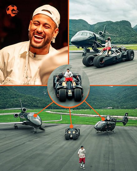 សម្ភារៈនិយមទំនើបប្រណីតចំនួន ៣គ្រឿង ដែលខ្សែប្រយុទ្ធ Neymar បានចំណាយលុយទិញរួមមាន រថយន្ត Batmobile ដែលត្រូវបានគេស្គាល់ថា ជារថយន្តមួយបានចម្លងចេញពីក្នុងរឿង The Dark Knight Returns (មានតម្លៃ 1.3លានអឺរ៉ូ) នេះបើយោងកាសែតអេស្ប៉ាញ Marca ហើយតម្លៃសរុបនេះ គឺ 50លានអឺរ៉ូ (ប្រហែល 525 កោដិរូពី) ។