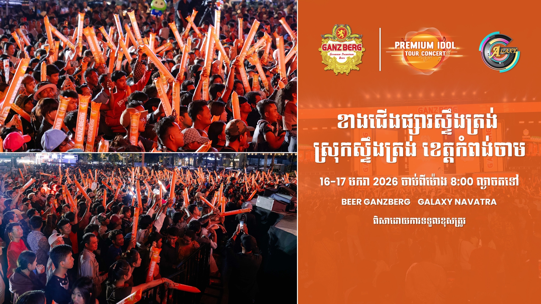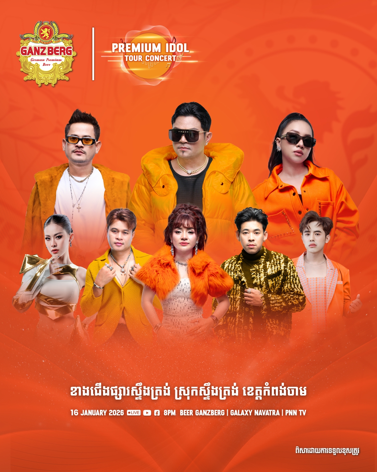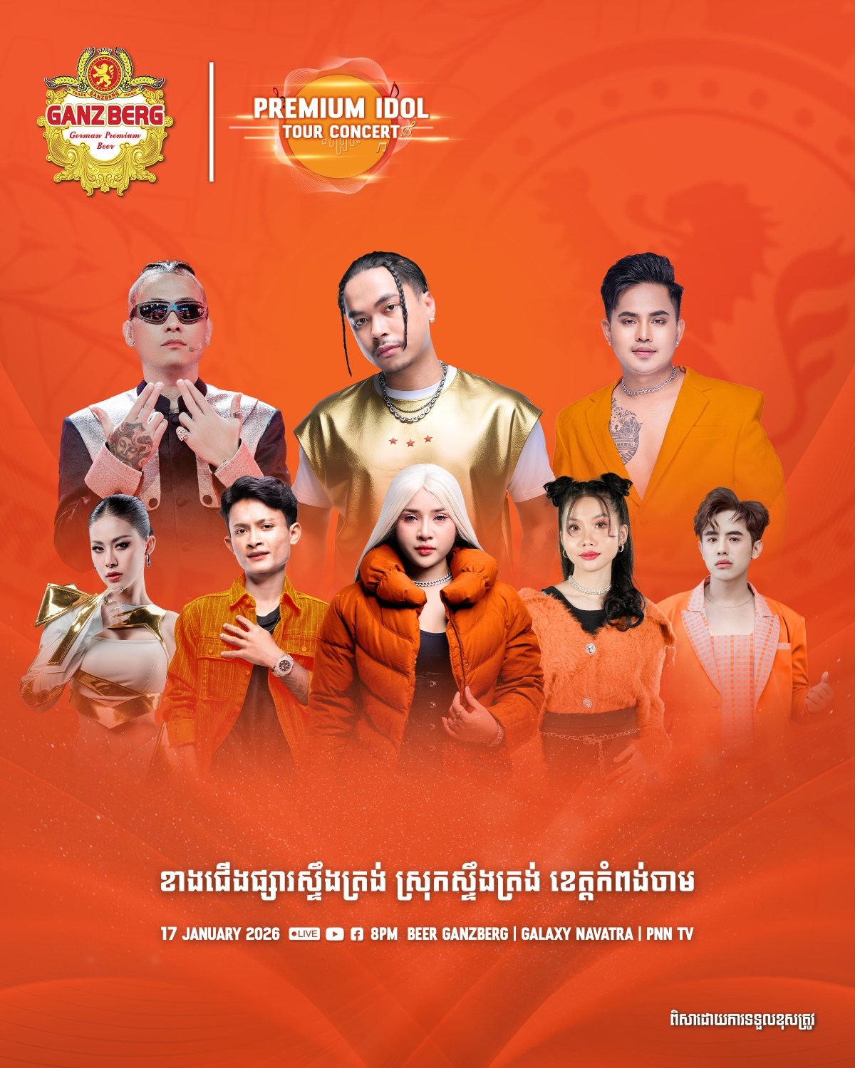 ត្រៀមៗ! តារាចម្រៀងល្បីៗត្រៀមអង្រួនឆាកតន្រ្តី Ganzberg Premium Idol Tour Concert 2026 ២ថ្ងៃជាប់គ្នា ក្នុងខេត្តកំពង់ចាម