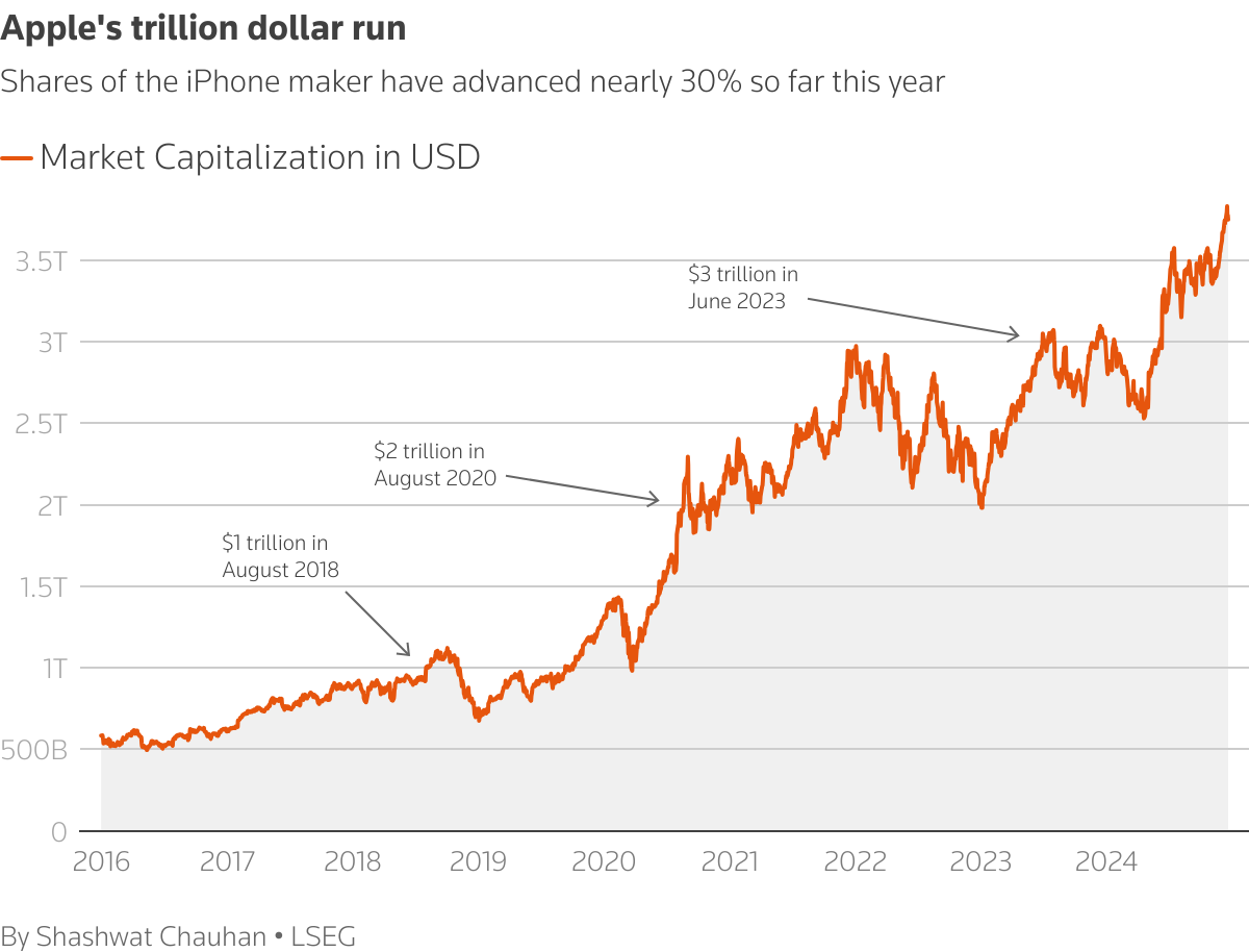 តម្លៃភាគហ៊ុនរបស់ Alphabet បានកើនឡើងយ៉ាងគំហុក ដោយជួយឲ្យក្រុមហ៊ុននេះ នាំមុខ Apple និងក្លាយជាក្រុមហ៊ុនដែលមានតម្លៃទីផ្សារធំជាងគេទី២នៅលើពិភពលោក បន្ទាប់ពី Nvidia។ វិនិយោគិនបានឆ្លើយតបវិជ្ជមានចំពោះយុទ្ធសាស្ត្រ AI ថ្មីៗ រួមមានការអភិវឌ្ឍម៉ូឌែល Gemini AI និងការពង្រីកការប្រើប្រាស់ AI ទៅក្នុងសេវាកម្មស្វែងរក ការផ្សព្វផ្សាយ និង Cloud។
