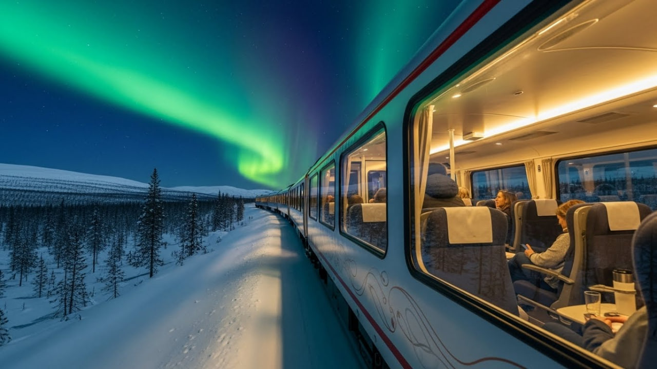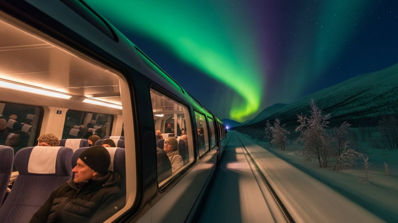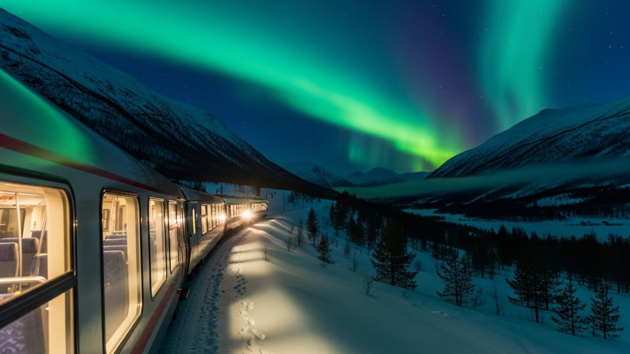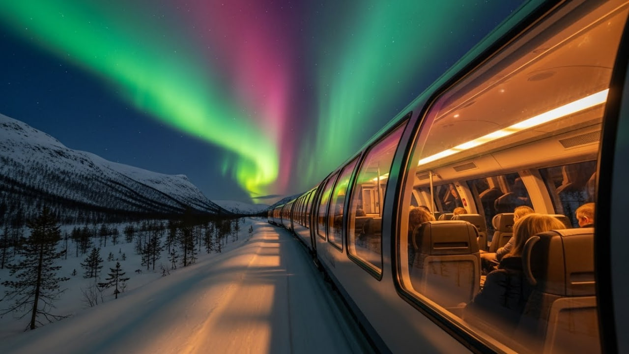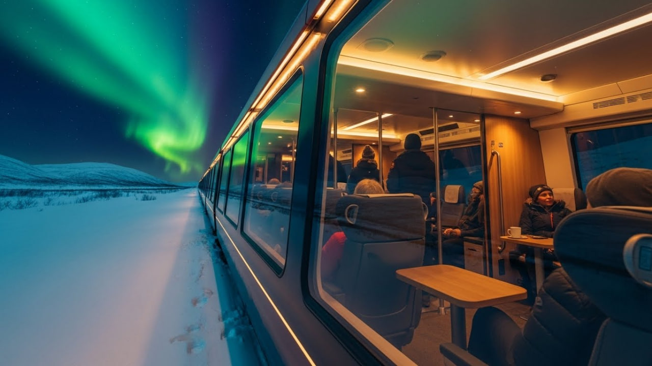 (បរទេស)៖ ប្រទេសន័រវែសបានធ្វើឱ្យពិភពលោកមានការចាប់អារម្មណ៍យ៉ាងខ្លាំង តាមរយៈការដាក់ឱ្យដំណើរការនូវសេវាកម្មរថភ្លើងទេសចរណ៍ពេលរាត្រី ដែលមានបង្អួចកញ្ចក់ថ្លា panoramic ដំបូងគេបង្អស់នៅលើផ្លូវខ្សែទឹកកកអាក់ទិក (Arctic)។ រថភ្លើងនេះត្រូវបានរចនាឡើងយ៉ាងពិសេស ដើម្បីអនុញ្ញាតឱ្យអ្នកដំណើរអាចទស្សនា «ពន្លឺជើងមេឃ» ឬ Northern Lights (Aurora Borealis) យ៉ាងច្បាស់ត្រជាក់ភ្នែក ពីក្នុងទូររថភ្លើងដែលមានផាសុកភាព និងកក់ក្តៅ។