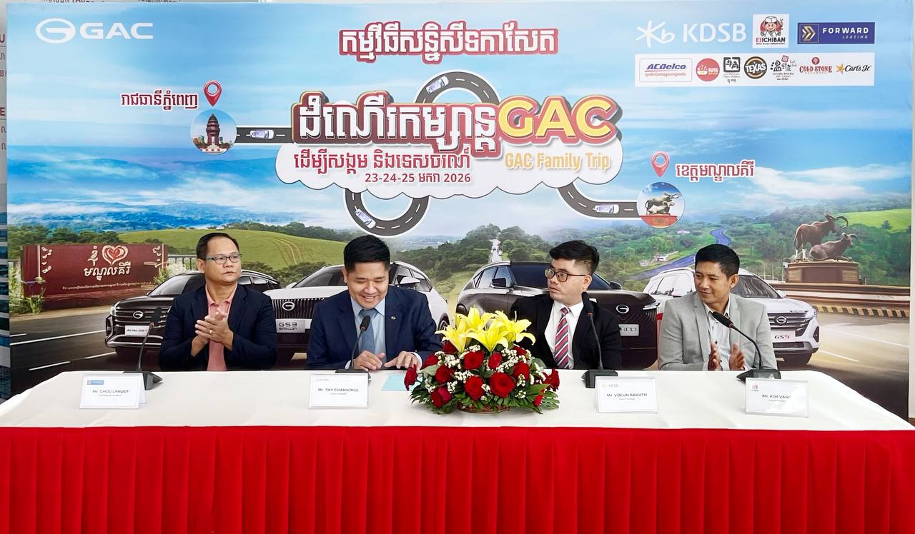 (ភ្នំពេញ)៖ ក្រុមហ៊ុន GAC Cambodia នៅថ្ងៃទី២០ ខែមករា ឆ្នាំ២០២៦នេះ បានប្រកាសពីការរៀបចំដំណើរកម្សាន្ដ GAC ដើម្បីសង្គម និងទេសចរណ៍ លើកទី៤ ទៅកាន់ទឹកដីនៃភាគឦសាន ខេត្តមណ្ឌលគីរី រយៈពេល ៣ថ្ងៃ ២យប់ ចាប់ពីថ្ងៃទី២៣ ដល់ថ្ងៃទី២៥ ខែមករា ឆ្នាំ២០២៦ខាងមុខនេះ ក្នុងគោលបំណងជួយផ្សព្វផ្សាយសក្តានុពលទេសចរណ៍នៃខេត្តមណ្ឌលគីរី និងគាំទ្រកម្មវិធីសប្បុរសធម៌ ដើម្បីរួមចំណែកអភិវឌ្ឍសង្គម និងសហគមន៍មូលដ្ឋាន ។