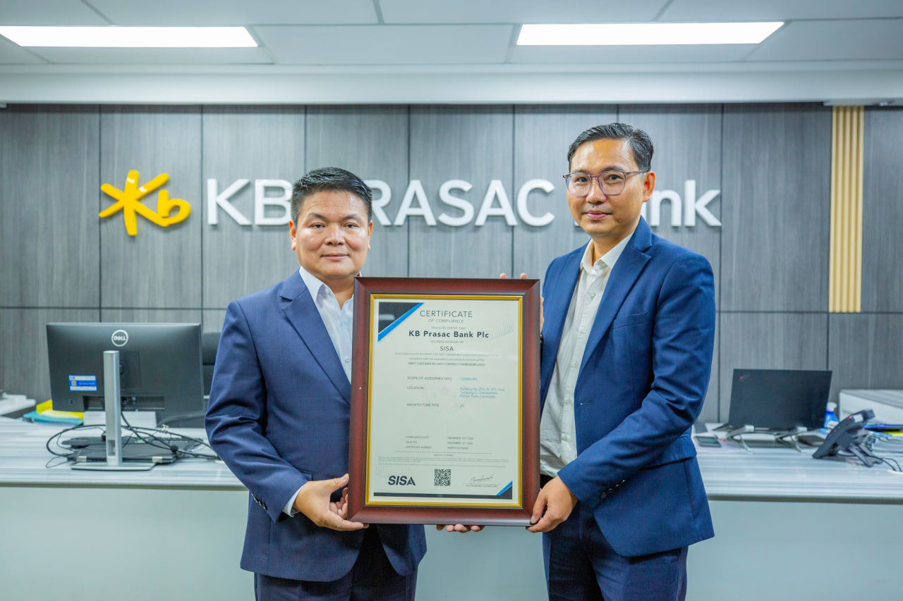 ធនាគារ «ខេប៊ីប្រាសាក់» ទទួលបានវិញ្ញាបនបត្រអនុលោមភាព ក្នុងក្របខ័ណ្ឌត្រួតពិនិត្យសន្តិសុខ សម្រាប់អតិថិជនប្រើសេវាផ្ទេរប្រាក់ក្រៅប្រទេសតាម «SWIFT» ឆ្នាំ២០២៥