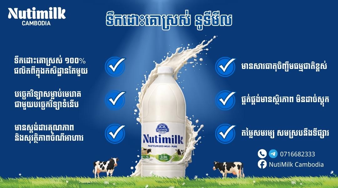 ទឹកដោះគោស្រស់ NutiMilk (Pasteurized Milk) ចូលដល់ទីផ្សារកម្ពុជាជាផ្លូវការ