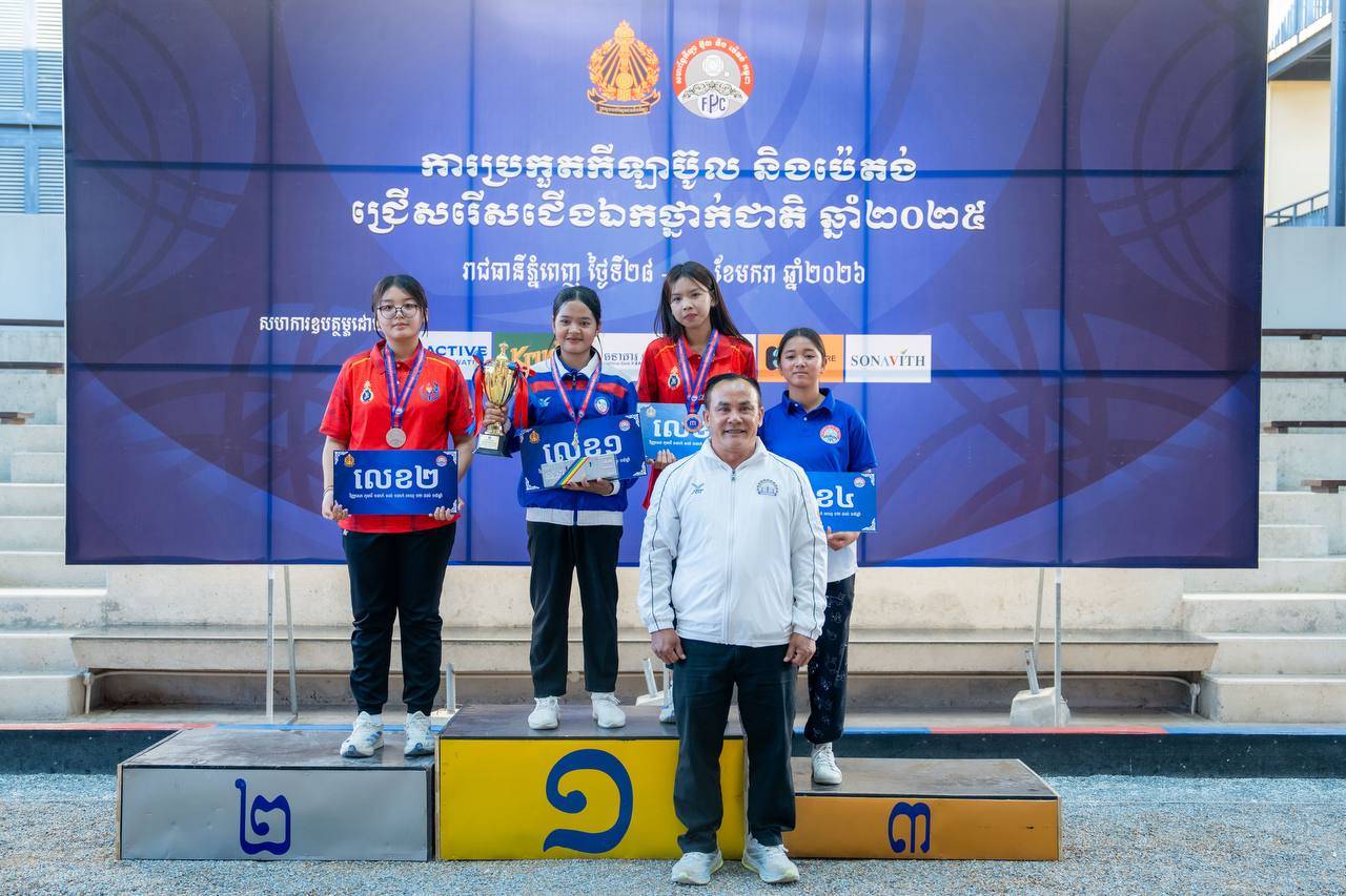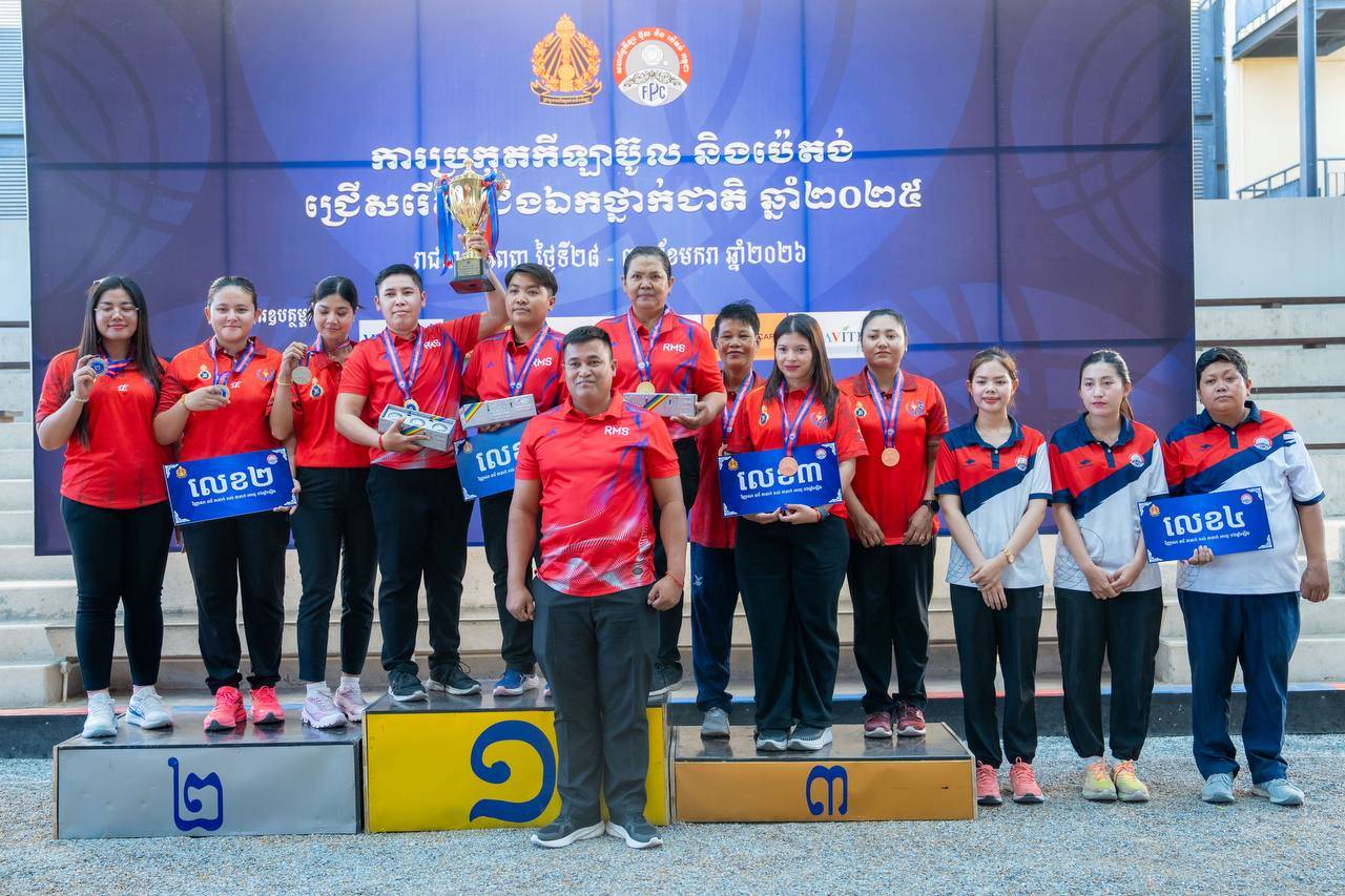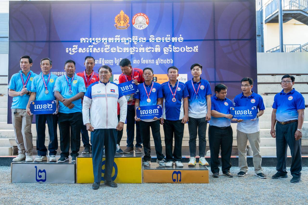 (ភ្នំពេញ)៖ ការប្រកួតកីឡាប៊ូល និងប៉េតង់ជ្រើសរើសជើងឯកថ្នាក់ជាតិ ប្រចាំឆ្នាំ២០២៥ បានបញ្ចប់ជាមួយលទ្ធផលដ៏ស្វិតស្វាញ ក្រោយដំណើរការប្រកួតរយៈពេល ៣ថ្ងៃ ចាប់ពីថ្ងៃទី២៨-៣០ ខែមករា ឆ្នាំ២០២៦ នៅពហុកីឡដ្ឋានជាតិ (អូឡាំពិក) ស្របពេលមានសម្ព័ន្ធ-ក្លឹបរហូតដល់៧ ដែលដណ្ដើមបានមេដាយមាស ក្នុងចំណោម ៨វិញ្ញាសា ដែលសហព័ន្ធដាក់ឲ្យធ្វើការប្រកួតប្រជែងឆ្នាំនេះ។