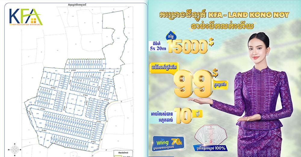 គម្រោងអភិវឌ្ឍន៍ដីឡូតិ៍ តម្លៃសមរម្យនៅតំបន់ជាយក្រុង ខេអេហ្វអេ លែនដ៍ គង នយ សម្ពោធបើកលក់ជាផ្លូវការហើយ