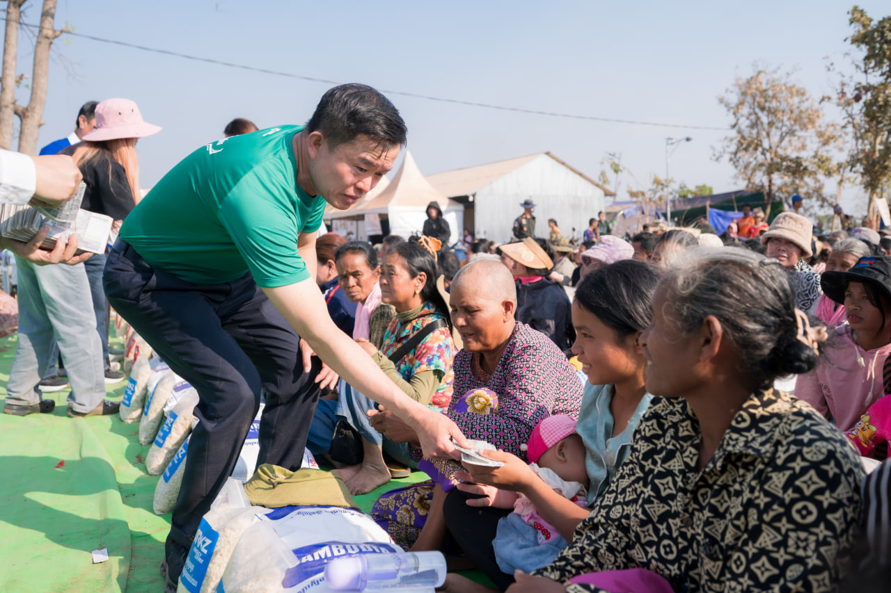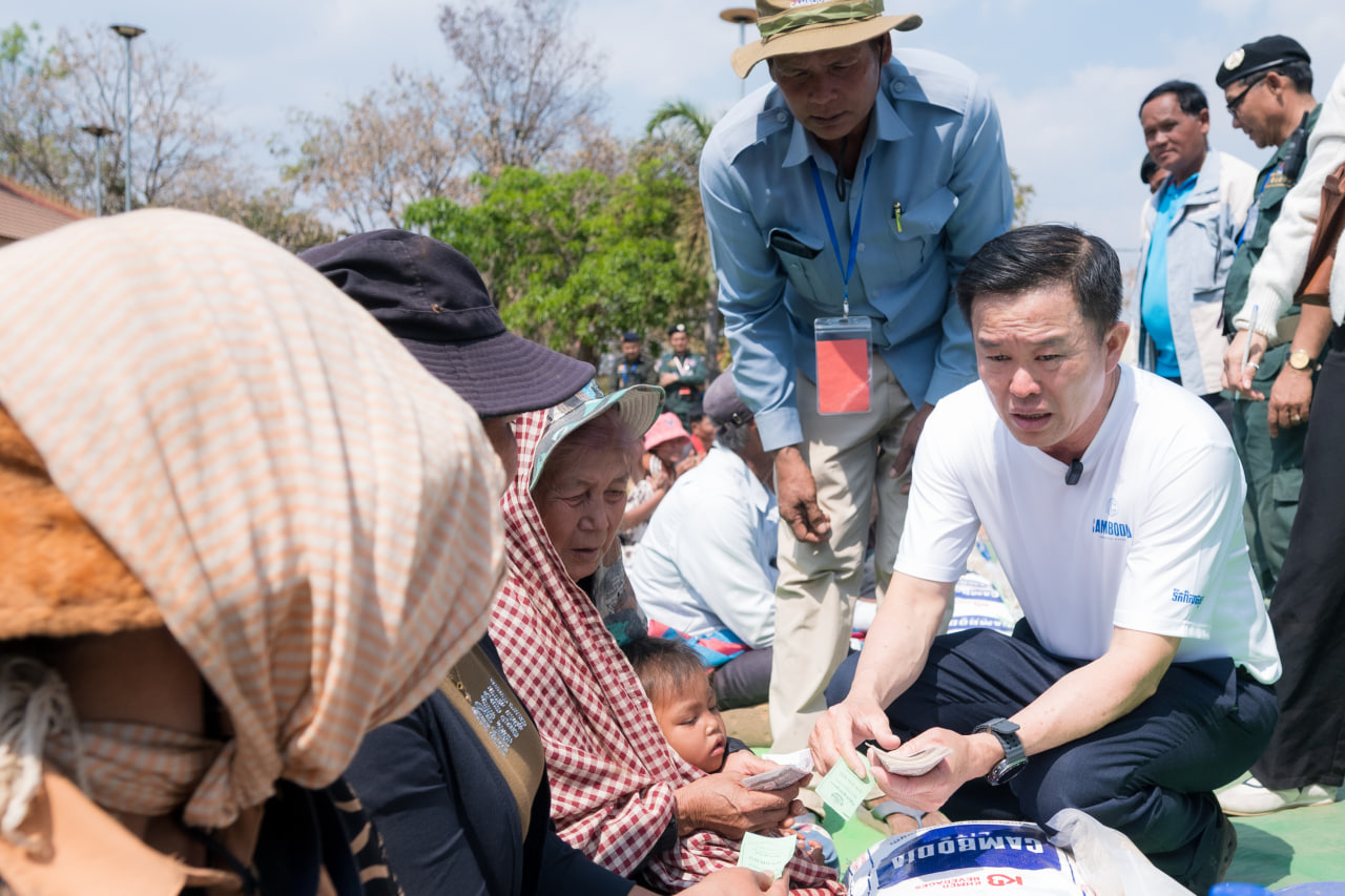 អ្នកឧកញ៉ា លាង ម៉េង ឧបត្ថម្ភដល់ជនភៀសសឹកសរុប ១០០លានរៀល ដល់គ្រួសាររាប់ពាន់នាក់នៅខេត្តឧត្តរមានជ័យ