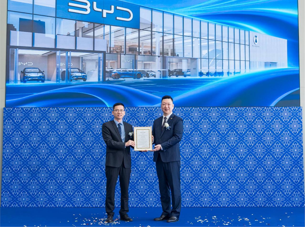 លោក Ye Chenghui បានប្រគល់ផ្លាកសញ្ញាអនុញ្ញាតជាផ្លូវការជូនដល់មជ្ឈមណ្ឌល BYD & Denza Flagship Center ក្នុងប្រទេសកម្ពុជា។ នេះសបញ្ជាក់ពីការទទួលស្គាល់យ៉ាងពេញលេញរបស់ម៉ាកយីហោ BYD ទៅលើសមត្ថភាពប្រតិបត្តិការ និងប្រព័ន្ធសេវាកម្មរបស់ Harmony ICAR នៅក្នុងទីផ្សារកម្ពុជា។