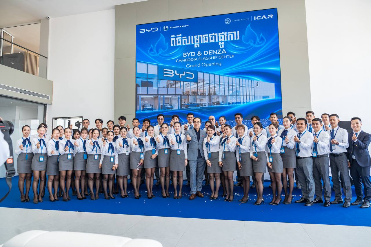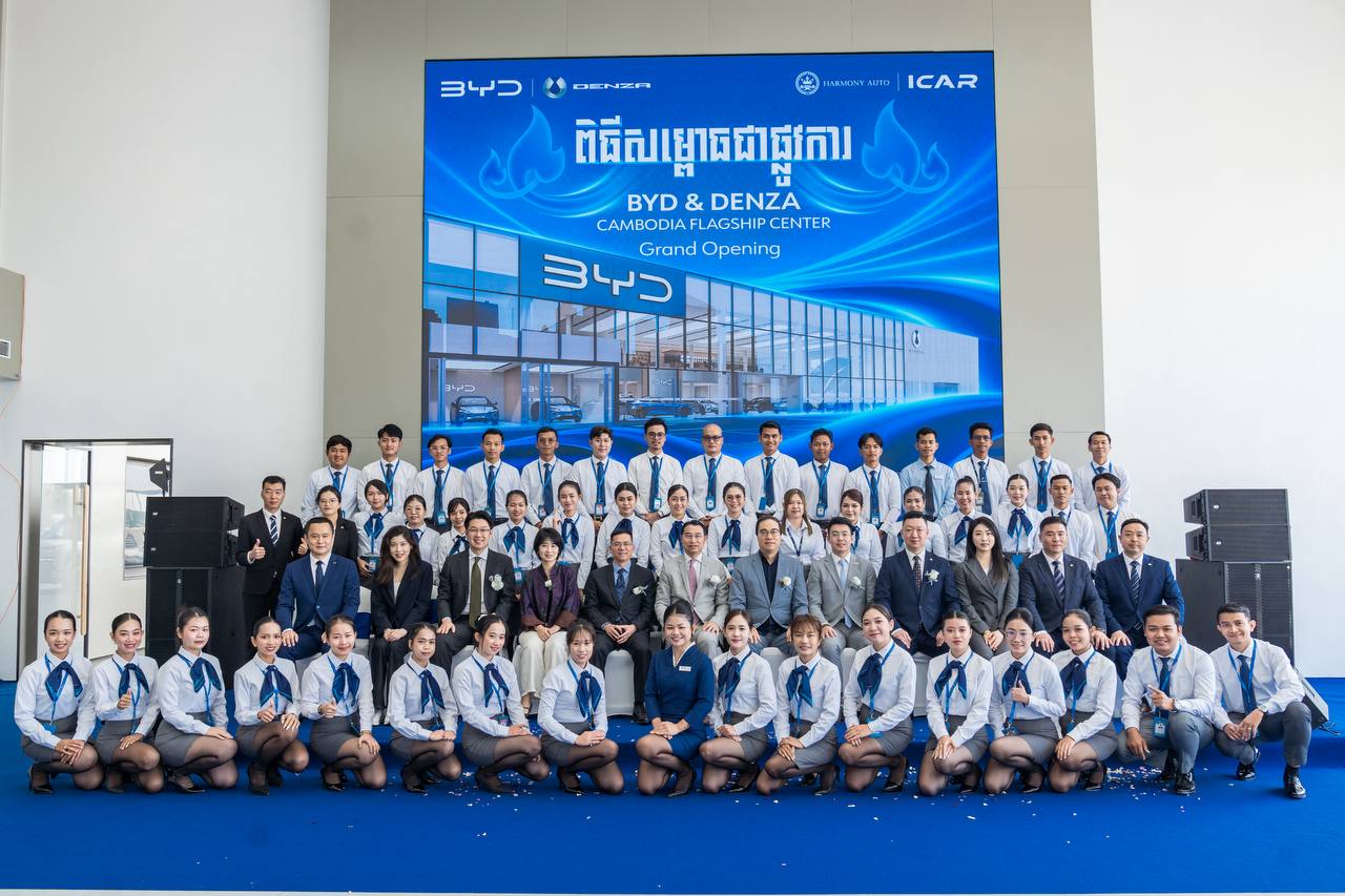 (ភ្នំពេញ)៖ មជ្ឈមណ្ឌលចែកចាយផ្លូវការនៃម៉ាកយីហោទ្វេ BYD & DENZA របស់ Harmony ICAR នៅថ្ងៃទី៣០ ខែមករា ឆ្នាំ២០២៦ បានសម្ពោធជាផ្លូវការនៅរាជធានីភ្នំពេញ ប្រទេសកម្ពុជា ស្របពេលដែលរថយន្តម៉ូដែល SEALION 5 ចំនួនពីរគ្រឿងដំបូងដែលទើបតែចេញពីខ្សែសង្វាក់ផលិតកម្មនៃរោងចក្រដំឡើង BYD នៅកម្ពុជា ត្រូវបានប្រគល់ជូនម្ចាស់រថយន្តដោយផ្ទាល់ ដែលបានក្លាយជាចំណុចចាប់អារម្មណ៍យ៉ាងខ្លាំងពីសំណាក់ភ្ញៀវកិត្តិយស និងបណ្តាញសារព័ត៌មានដែលបានចូលរួម។