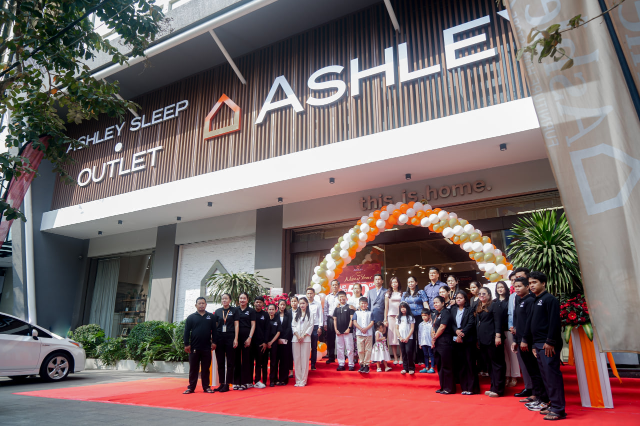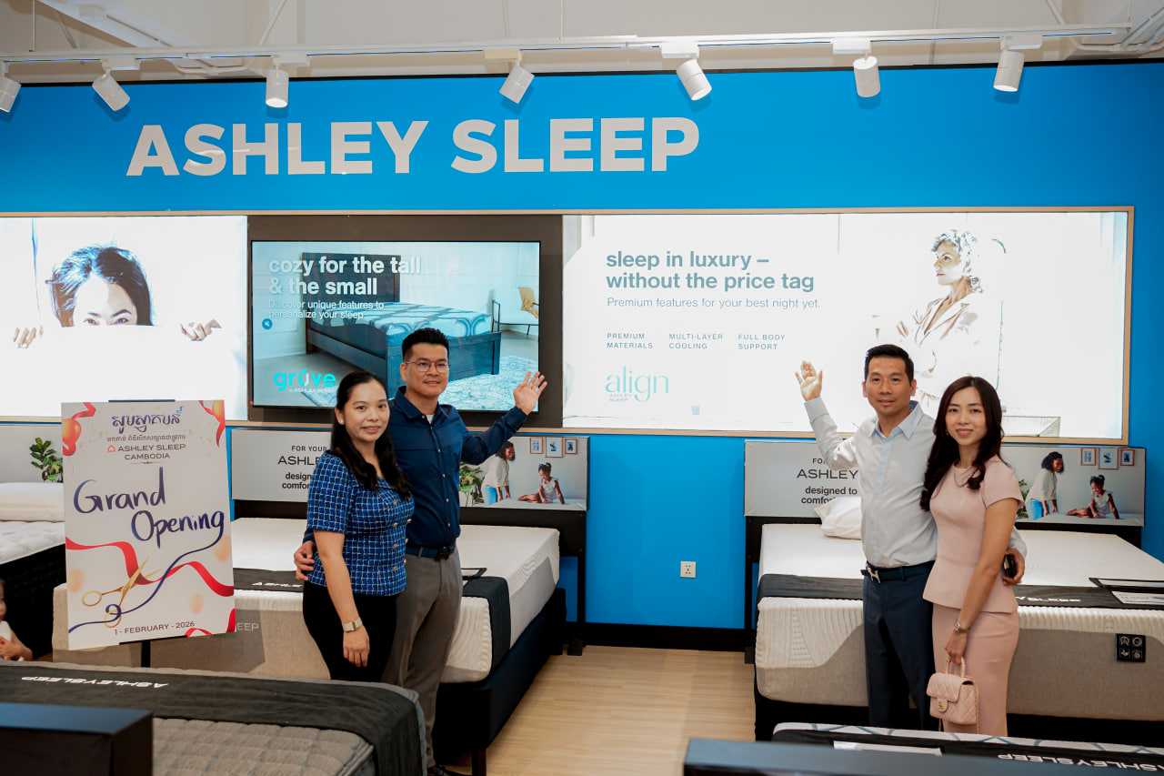 (ភ្នំពេញ)៖ ក្រុមហ៊ុន Ashley Furniture HomeStore Cambodia បានរៀបចំពិធីសម្ពោធជាផ្លូវការ ដើម្បីប្រកាសដំណើរការម៉ាកយីហោបន្ថែមចំនួន ២ រួមមាន Ashley Sleep Cambodia និង Ashley Outlet Cambodia ដែលជាជំហានថ្មីដ៏សំខាន់ ក្នុងការពង្រឹងបទពិសោធន៍រស់នៅ និងការគេងប្រកបដោយគុណភាព សម្រាប់អតិថិជននៅកម្ពុជា។