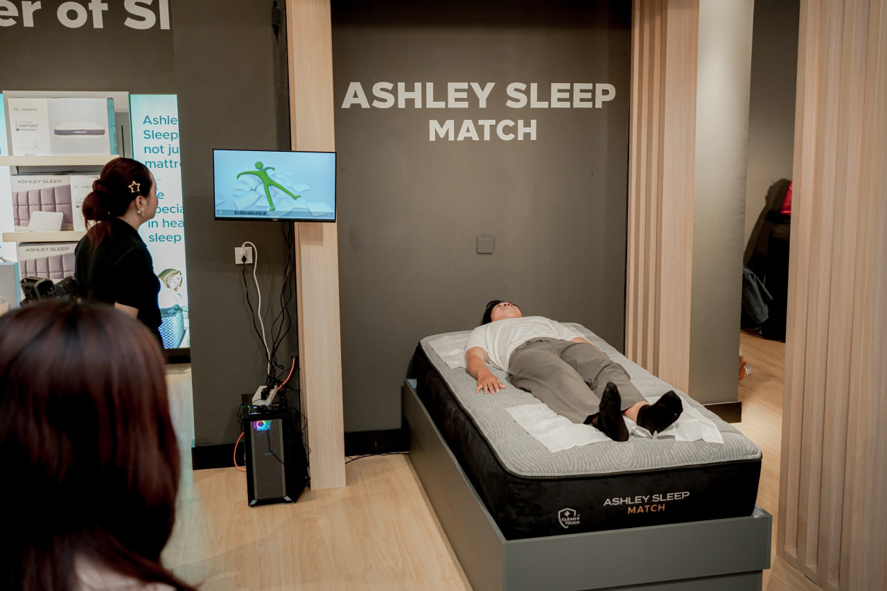 Ashley Sleep Cambodia មានភាពខុសប្លែកពីប្រេនពូកទូទៅ ដោយប្រើប្រាស់ បច្ចេកវិទ្យា AI Sleep Scan ដ៏ទំនើបបំផុត ដែលអាចវិភាគសម្ពាធរាងកាយ ទម្លាប់គេង និងបញ្ហាដំណេករបស់មនុស្សម្នាក់ៗ។