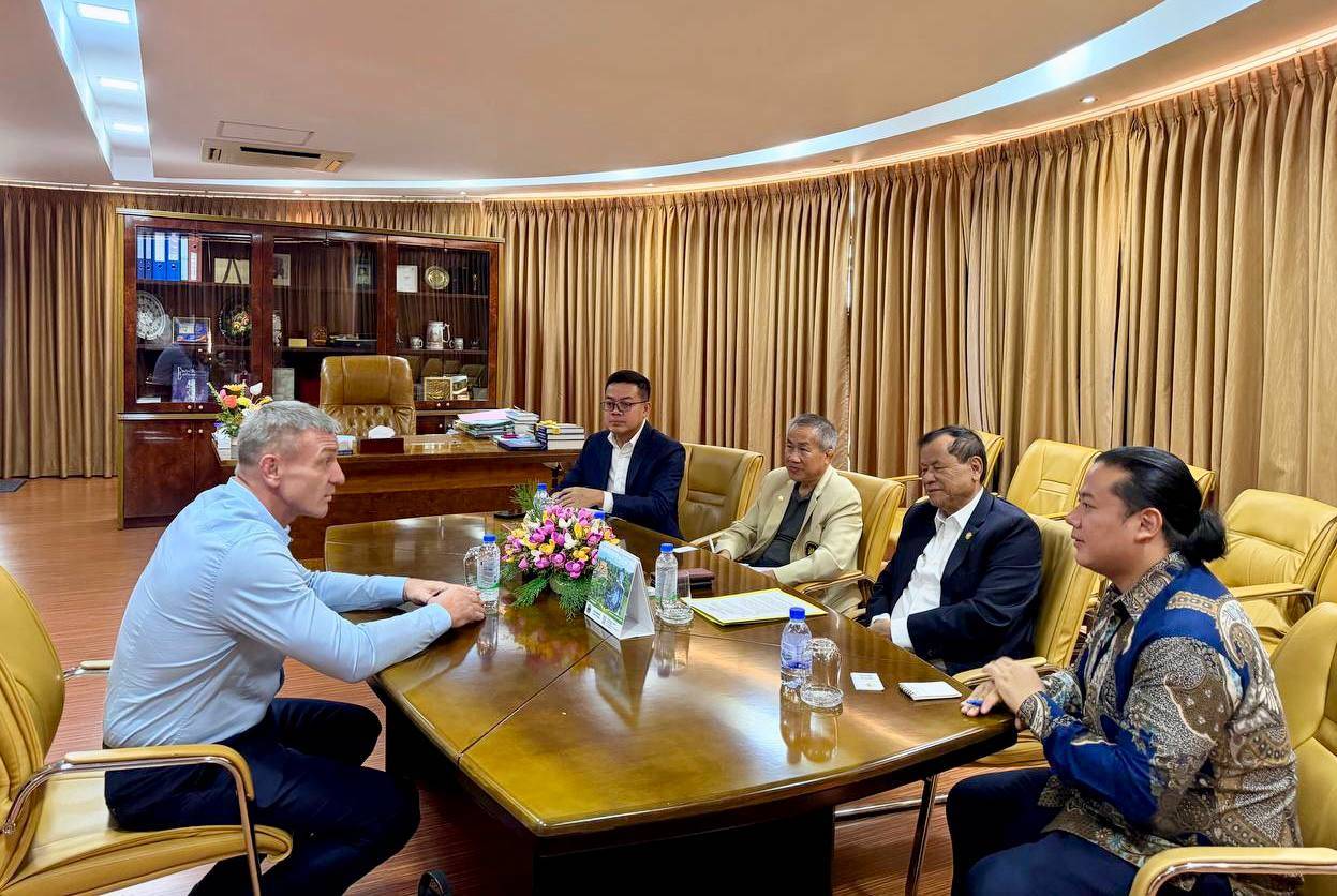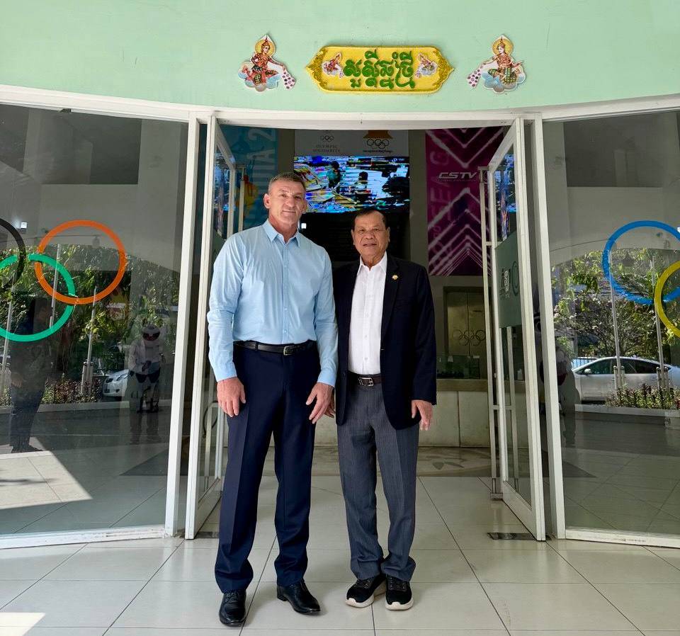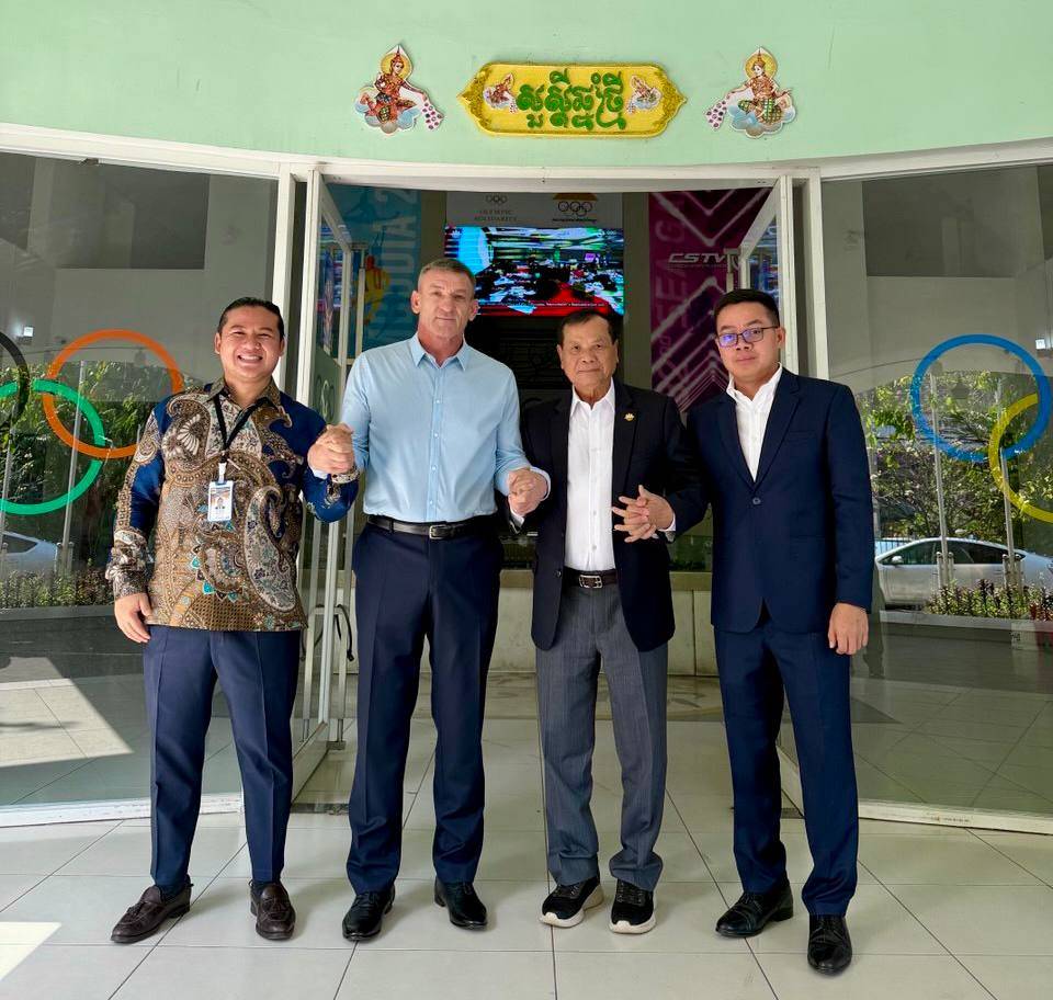 (ភ្នំពេញ)៖ លោកបណ្ឌិតទេសរដ្ឋមន្ដ្រី ថោង ខុន ប្រធានគណៈកម្មាធិការជាតិអូឡាំពិកកម្ពុជា (NOCC) នៅថ្ងៃទី០៥ ខែកុម្ភៈនេះ បានអនុញ្ញាតឲ្យលោក Maxim Zubachev គ្រូបង្វឹកកីឡា SAMBO កម្រិតអន្តរជាតិ និងជាតំណាងសហព័ន្ធកីឡា SAMBO អាស៊ី ចូលជួបសម្ដែងការគួរសម និងពិភាក្សាការងារ ដើម្បីពង្រឹងកិច្ចសហប្រតិបត្តិការ និងជំរុញការអភិវឌ្ឍកីឡា SAMBO នៅកម្ពុជា។