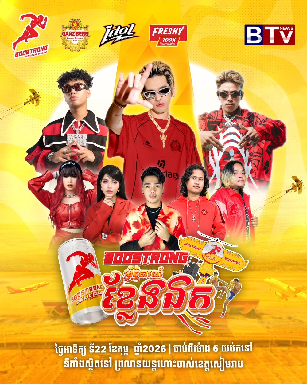 ព្រឹត្តិការណ៍ដ៏អស្ចារ្យនេះ បងប្អូនជាតិ និងភ្ញៀវអន្តរជាតិ អាចចូលរួមដោយសេរី។ ជាពិសេសពេលទិញប៊ូសស្រ្តង ញាំប៉ូវកម្លាំង កុំភ្លេចពិនិត្យក្រវិលកំប៉ុងផង ប្រយ័ត្នឈ្នះរង្វាន់ធំពីប៊ូសស្រ្តង ច្រលំបោះកំប៉ុងចោល ក្លាយជាអាសារបង់ ព្រោះប៊ូសស្រ្តងរង្វាន់ច្រើនណាស់។