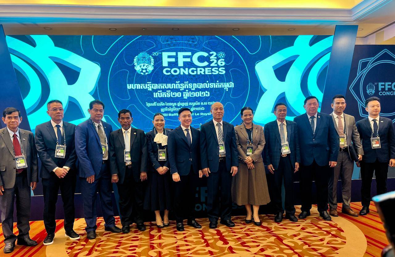(ភ្នំពេញ)៖ នាយឧត្តមសេនីយ៍ សៅ សុខា បានបន្ដជាប់ជាប្រធានសហព័ន្ធកីឡាបាល់ទាត់កម្ពុជា (FFC) អាណត្តិឆ្នាំ២០២៦-២០៣០ ក្រោយទទួលបានការបោះឆ្នោតគាំទ្រពីសមាជិកគណៈកម្មាធិការប្រតិបត្តិ ក្នុងមហាសន្និបាត លើកទី២០ របស់ខ្លួននៅព្រឹកថ្ងៃទី២១ ខែកុម្ភៈ ឆ្នាំ២០២៦។