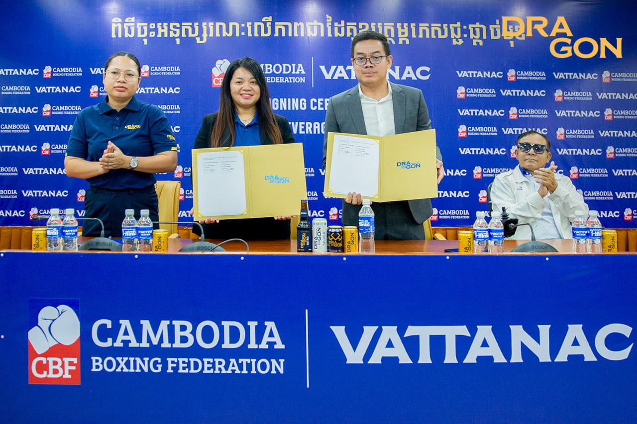(ភ្នំពេញ)៖ សហព័ន្ធកីឡាប្រដាល់សកលកម្ពុជា ទទួលបានការឧបត្ថម្ភធំ ដើម្បីរួមចំណែកអភិវឌ្ឍន៍វិស័យកីឡាពីក្រុមហ៊ុន វឌ្ឍនៈ ក្រោយពិធីចុះអនុស្សរណៈនៃការយោគយល់គ្នា លើភាពជាដៃគូឧបត្ថម្ភភេសជ្ជៈផ្តាច់មុខ រវាងសហព័ន្ធកីឡាប្រដាល់សកលកម្ពុជា និងក្រុមហ៊ុន វឌ្ឍនៈ ដែលធ្វើឡើងនៅគណៈកម្មាធិការជាតិអូឡាំពិកកម្ពុជា នៅព្រឹកថ្ងៃទី២៥ ខែកុម្ភៈ ឆ្នាំ២០២៦ ក្នុងការរៀបចំកម្មវិធីប្រកួតប្រដាល់សកលអាជីព Dragon The Golden Ring 2026 ដែលនឹងចាប់ផ្ដើមប្រកួតនៅចុងខែកុម្ភៈនេះ។
