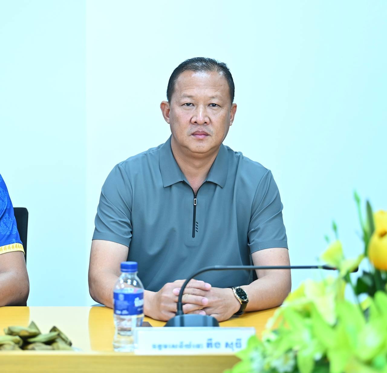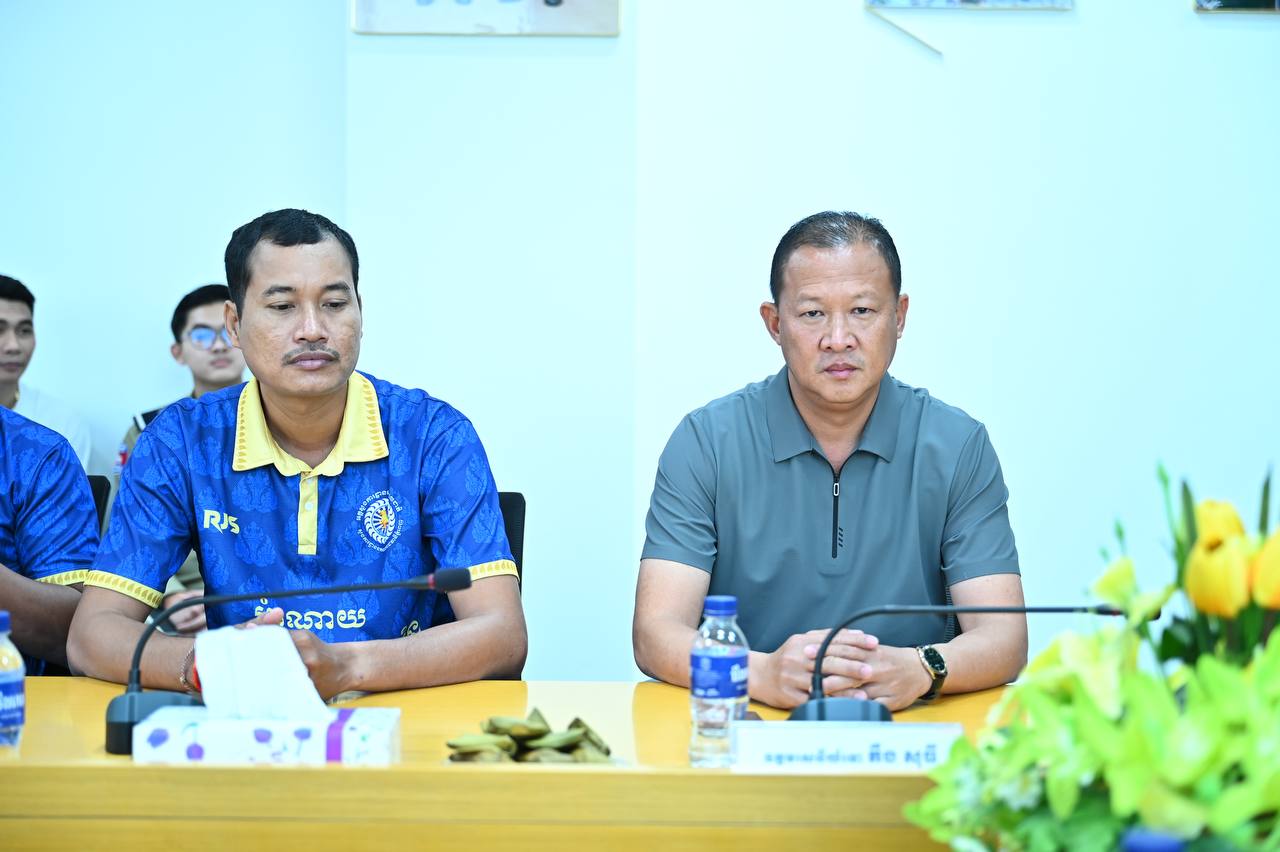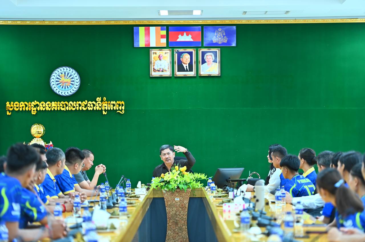 (ភ្នំពេញ)៖ នាព្រឹកថ្ងៃទី៣ ខែមីនា ឆ្នាំ២០២៦ ឧត្តមសេនីយ៍ឯក ជួន ណារិន្ទ អគ្គស្នងការរង និងជាស្នងការនគរបាលរាជធានីភ្នំពេញ និងជាអនុប្រធានសហព័ន្ធកីឡាបាល់ទះកម្ពុជា បានអនុញ្ញាតឱ្យក្រុមកីឡាករ-កីឡាការិនី គ្រូបង្វឹក និងក្រុមការងារ នៃក្លិបកីឡាបាល់ទះស្នងការដ្ឋាននគរបាលរាជធានីភ្នំពេញ ដឹកនាំដោយលោកឧត្តមសេនីយ៍ទោ តឹង សុធី ប្រធានប្រតិភូចូលជួបសំណេះសំណាល នៅសាលប្រជុំ នៃស្នងការដ្ឋាននគរបាលរាជធានីភ្នំពេញ។