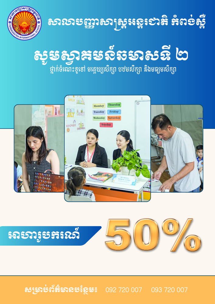 សម្រាប់សិស្ស១០០នាក់ដំបូង ទទួលសិស្សផ្ទេរចូលសម្រាប់ឆមាសទី២ ចាប់ពីថ្ងៃទី២៣ ខែកុម្ភៈ ឆ្នាំ២០២៦ ដែលរួមមាន៖