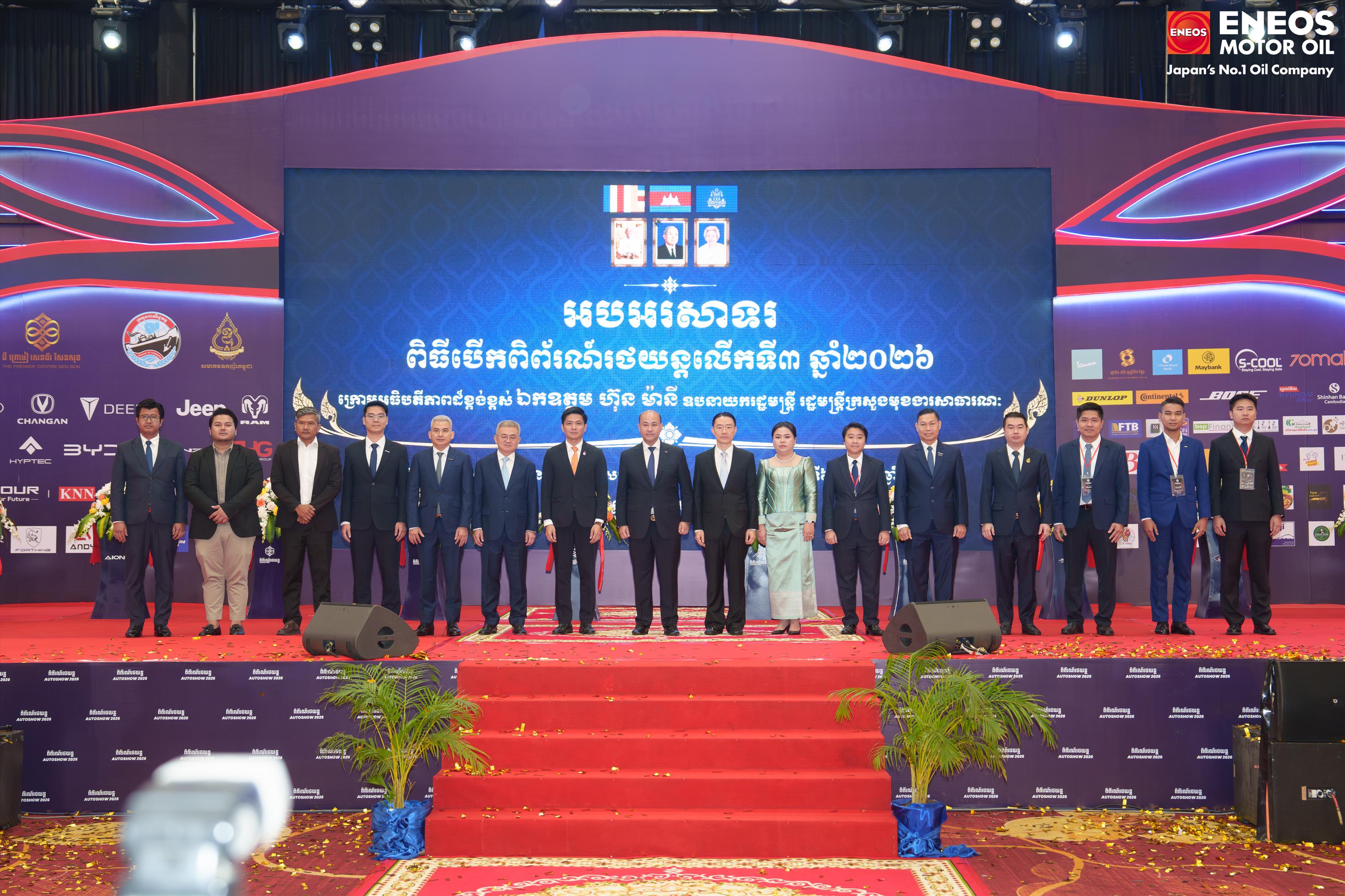 (ភ្នំពេញ)៖ ជាមួយនឹងភាពជោគជ័យរបស់ខ្លួនលើទីផ្សារប្រទេសកម្ពុជា ប្រេងម៉ាស៉ីនលំដាប់កំពូលរបស់ជប៉ុន ENEOS (អ៉ីណូស) បានចូលរួមព្រឹត្តិការណ៍ពិព័រណ៍រថយន្ដលើកទី៣ រយៈពេល៣ថ្ងៃ ចាប់ពីថ្ងៃទី៦ ដល់ថ្ងៃទី៨ ខែមីនា ឆ្នាំ២០២៦ នៅដឹ ព្រេមៀ សេនធ័រ សែនសុខ ក្រោមអធិបតីភាព ឧបនាយករដ្ឋមន្ដ្រី ហ៊ុន ម៉ានី រដ្ឋមន្ដ្រីក្រសួងមុខងារសាធារណៈ។