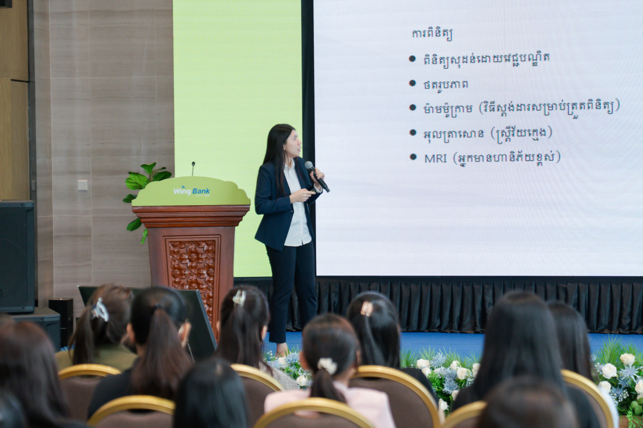 ធនាគារ វីង បានសហការជាមួយមជ្ឈមណ្ឌលសុខុមាលភាព Royal Group Wellness Center, មន្ទីរពេទ្យអន្តរជាតិអូរៀនដា, មន្ទីរពហុព្យាបាល Sing Specialist និងមន្ទីរពេទ្យ Intercare ដើម្បីរៀបចំកម្មវិធីស្ដីអំពីប្រធានបទសំខាន់ៗទាក់ទងនឹងសុខភាពស្ត្រី។ ក្នុងឱកាសនោះ អ្នកជំនាញបានសង្កត់ធ្ងន់លើសារៈសំខាន់នៃការពិនិត្យសុខភាពដើម្បីបង្ការជំងឺនានា ការពិនិត្យរកឃើញជំងឺតាំងពីដំណាក់កាលដំបូង និងការថែទាំសុខភាពតាមរបៀបរស់នៅប្រចាំថ្ងៃដែលជួយជំរុញឱ្យមានការយកចិត្តទុកដាក់កាន់តែខ្លាំងលើសុខុមាលភាពផ្ទាល់ខ្លួន។