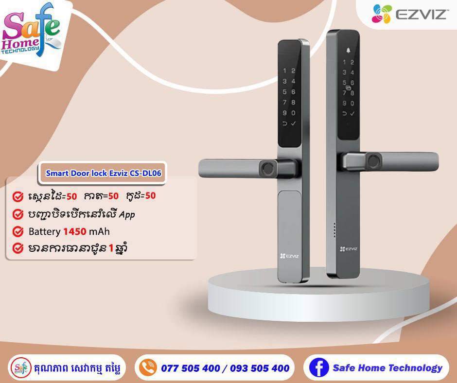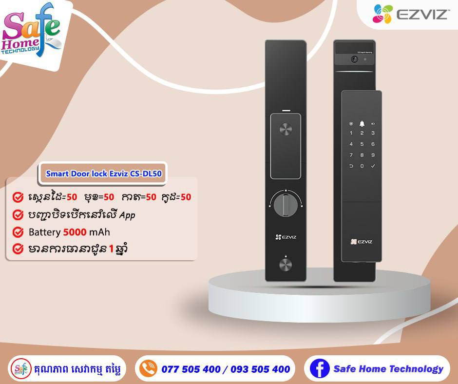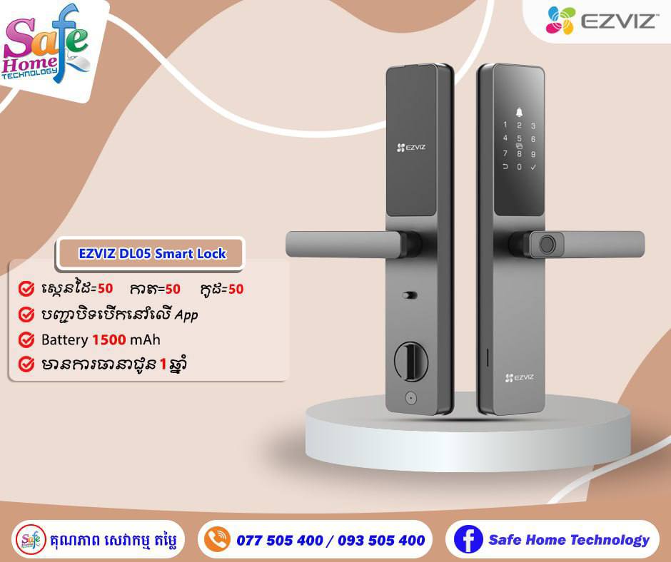 (ភ្នំពេញ)៖ Safe Home មានលក់សោរឆ្លាតវៃ Smart Lock ដែលឲ្យសញ្ញាមកទូរសព្ទដៃ បើកសោរពីចម្ងាយ ស្កេនកាត ដាក់លេខកូដបានចំនួន ៥០អ្នកប្រើប្រាស់ ស្កេនដៃបានយ៉ាងឆាប់រហ័ស និងមានការធានាច្បាស់លាស់ ចេញពីក្រុមហ៊ុន។