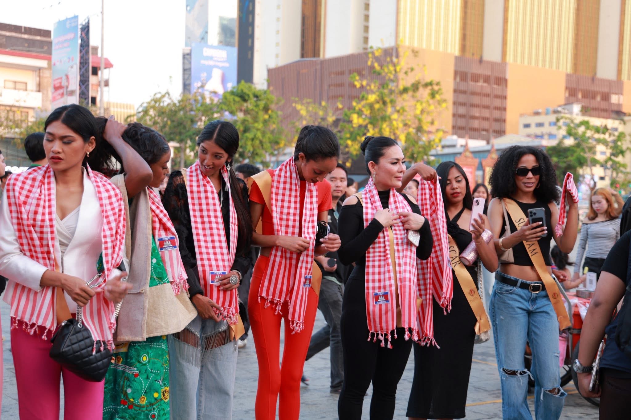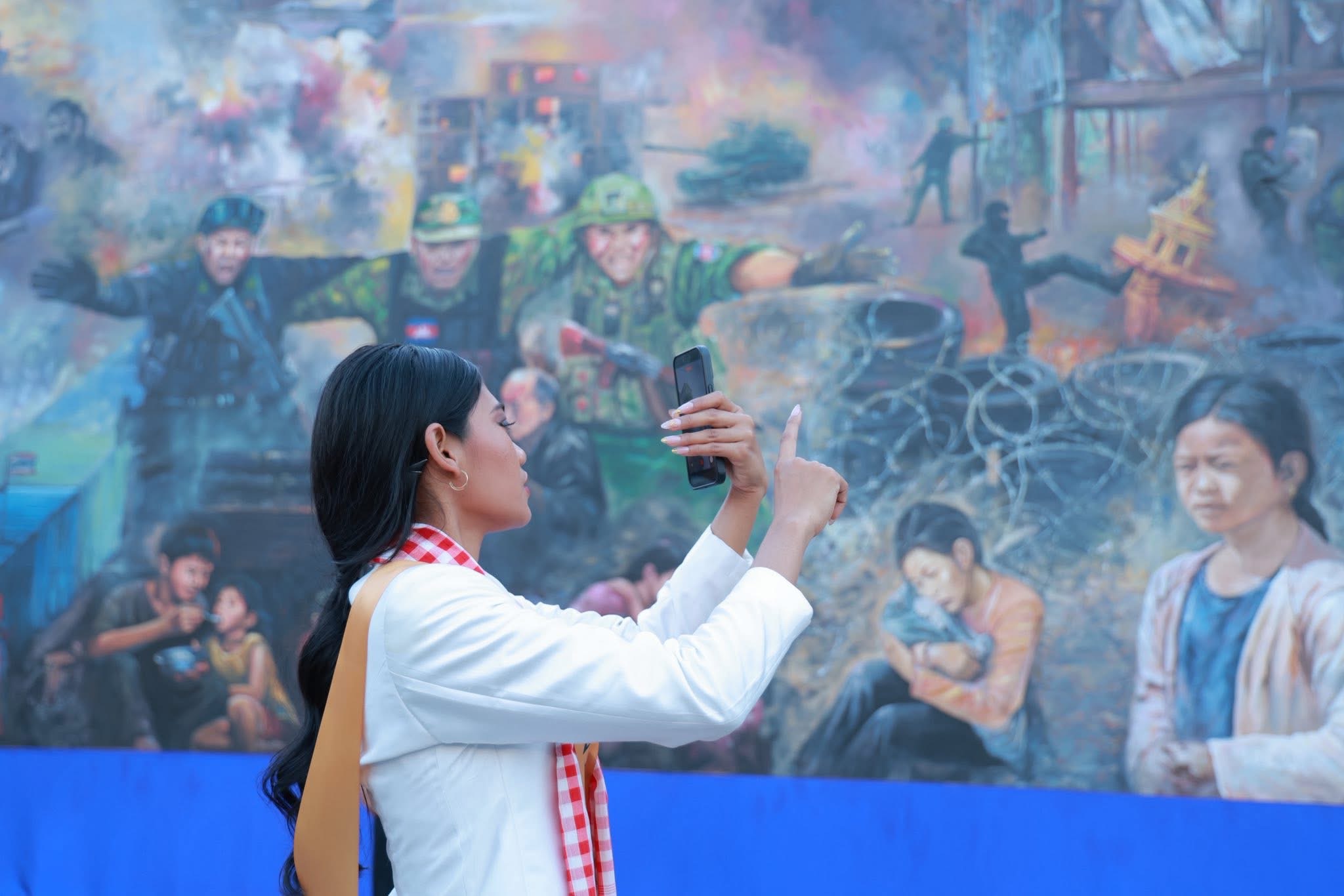 (ភ្នំពេញ)៖ បវរកញ្ញាឯកភពផែនដីអន្តរជាតិឆ្នាំ២០២៥ (Miss Planet International 2025) មកពី ៣៥ប្រទេស ជុំវិញពិភពលោក នាថ្ងៃទី០៨ ខែមីនា ឆ្នាំ២០២៦ បានចុះពិនិត្យមើលជាក់ស្តែងលើទីតាំងផ្ទាំងគំនូរ ដែលដាក់តាំងបង្ហាញនៅកណ្តាលរាជធានីភ្នំពេញ ដែលជាផ្ទាំងគំនូរបញ្ជាក់ពីស្លាកស្នាមនៃការឈឺរបស់ប្រជាជនកម្ពុជា ដែលរងការបំផ្លិចបំផ្លាញប្រាង្គប្រាសាទខ្មែរ ទេវរូបសាសនា ហេដ្ឋារចនាសម្ព័ន្ធស្ពាន ថ្នល់ ស្លាកស្នាមនៃការខ្ទេចខ្ទាំ ភាពសោកសៅ និងការឈឺចាប់ដែលប្រជាពលរដ្ឋកម្ពុជាបានឆ្លងកាត់ក្នុងបរិបទជម្លោះព្រំដែន កម្ពុជា និងថៃ។