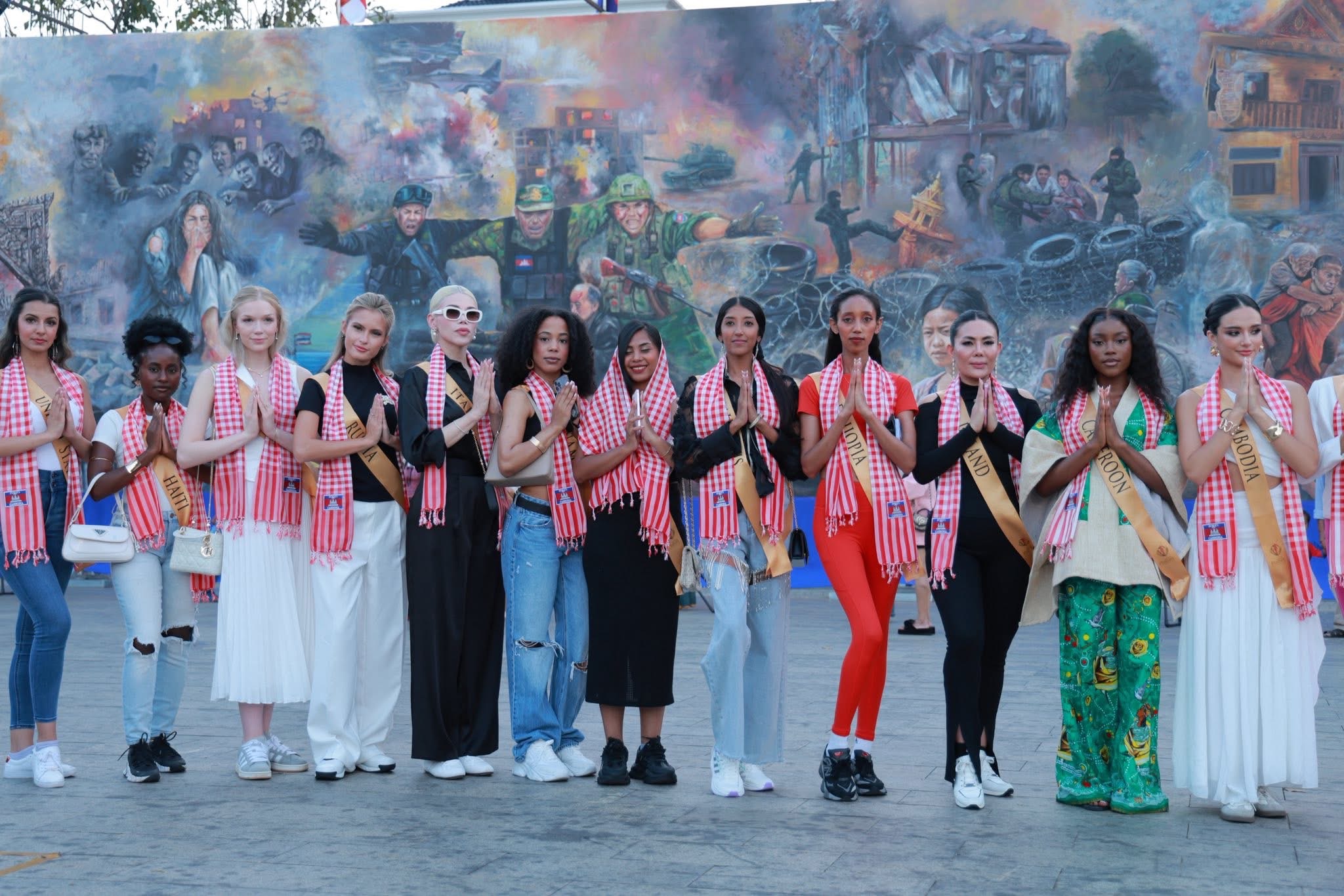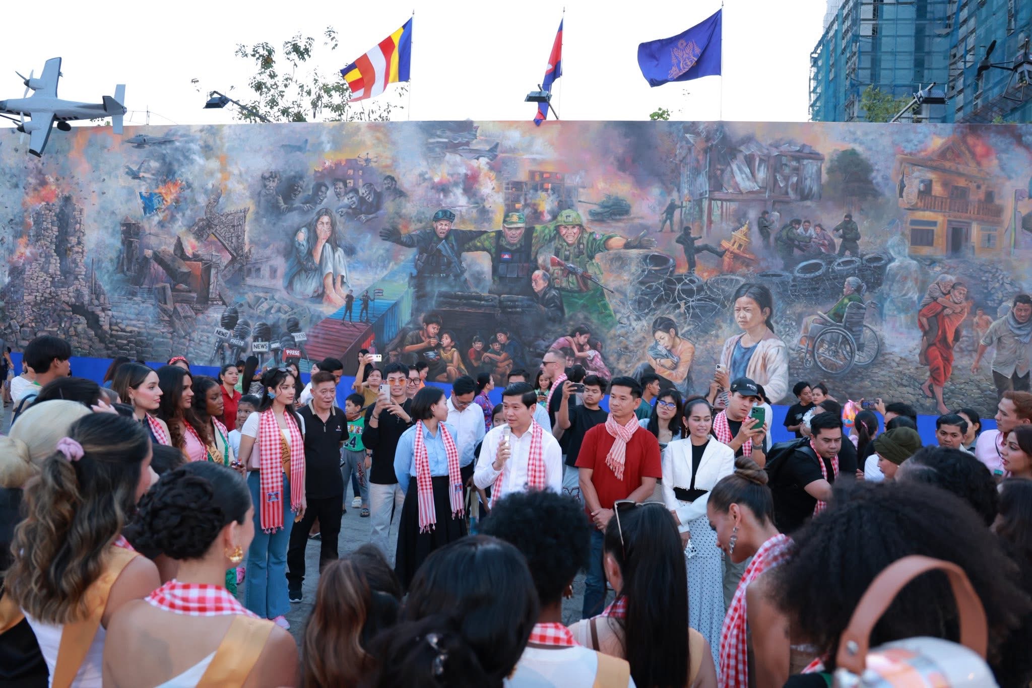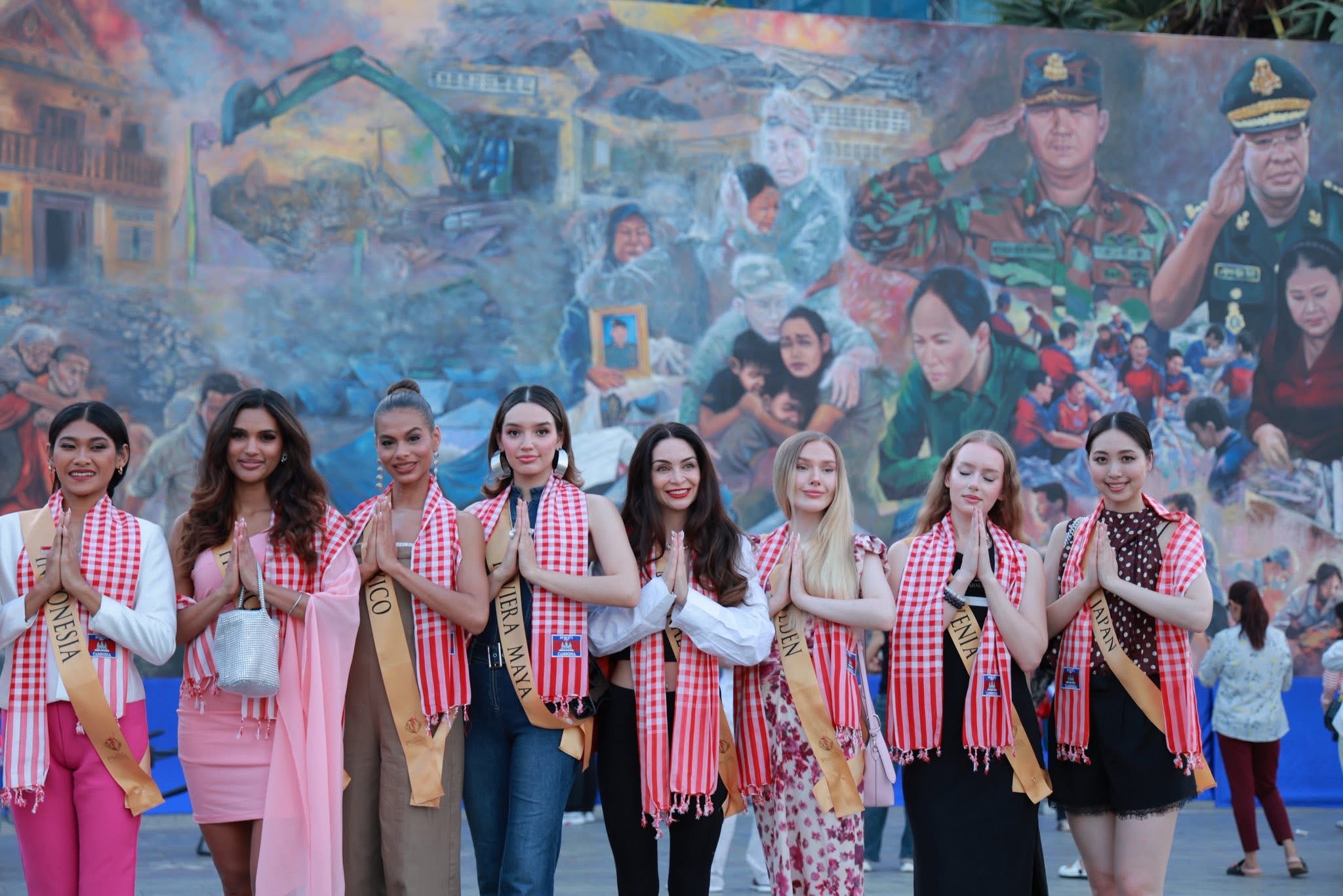 Miss Planet International 2025 មកពី ៣៥ប្រទេសជុំវិញវិញពិភពលោក ចុះមើលផ្ទាំងគំនូរដែលបង្ហាញពីស្លាកស្នាមនៃការឈឺរបស់ប្រជាជនកម្ពុជា ដោយសារសង្គ្រាមខ្មែរ-ថៃ