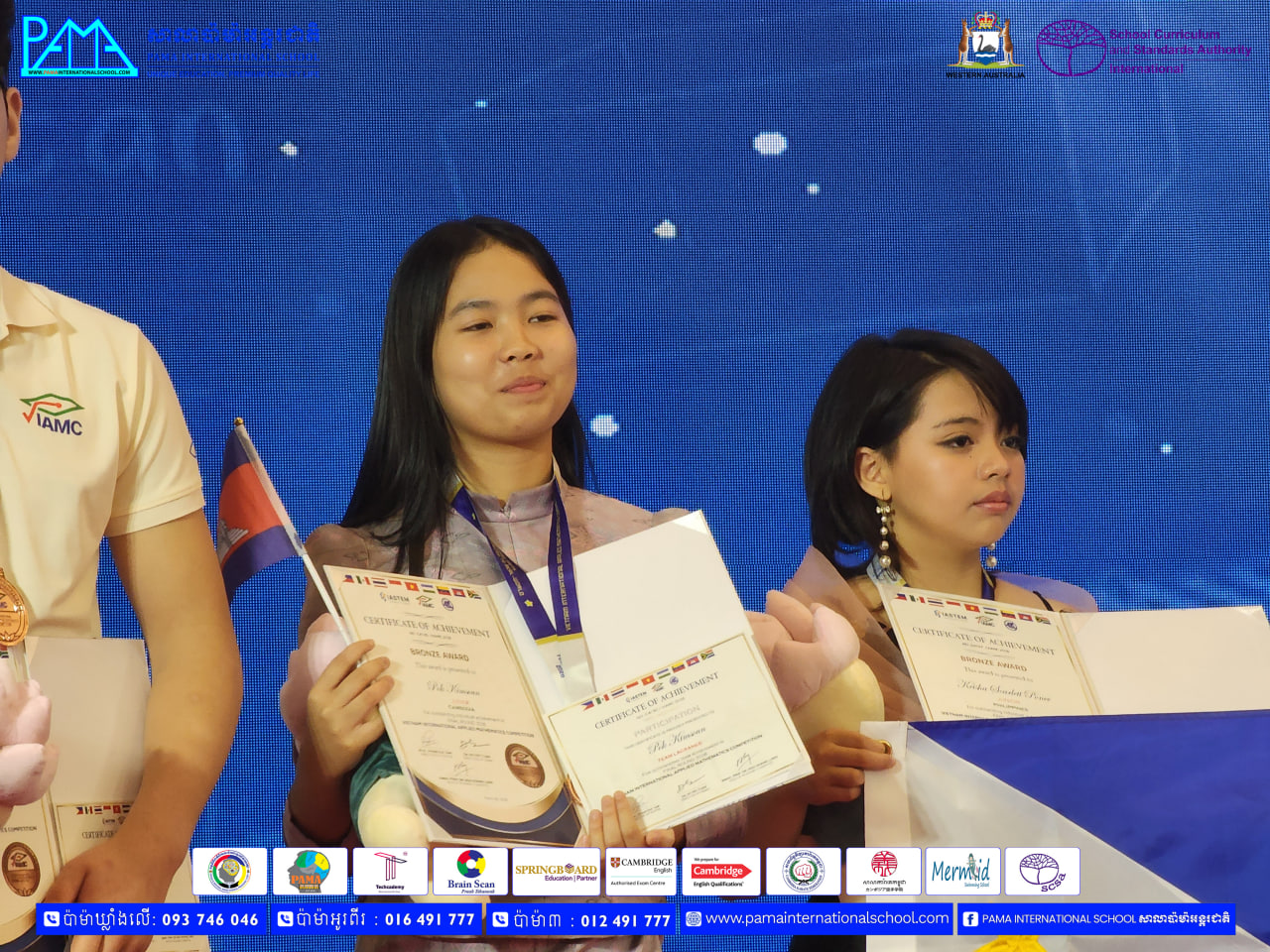 លោក ផុន ហុកឡាំ ស្ថាបនិក សាលាប៉ាម៉ាអន្តរជាតិ បានឲ្យដឹងថា សាលាប៉ាម៉ាអន្តរជាតិ ពិតជាមានមោទនភាពក្រៃលែង ព្រោះសិស្សរៀនពេញម៉ោងកម្មវិធីជាតិ និងកម្មវិធីអន្តរជាតិនៃរដ្ឋាភិបាលប្រទេសអូស្រ្តាលីខាងលិច/Western Australian Curriculum-School Curriculum and Standards Authority (WA-SCSA) ដែលលើកនេះ សិស្សចូលប្រកួត០៥នាក់ ជាប់ទាំង០៥នាក់។