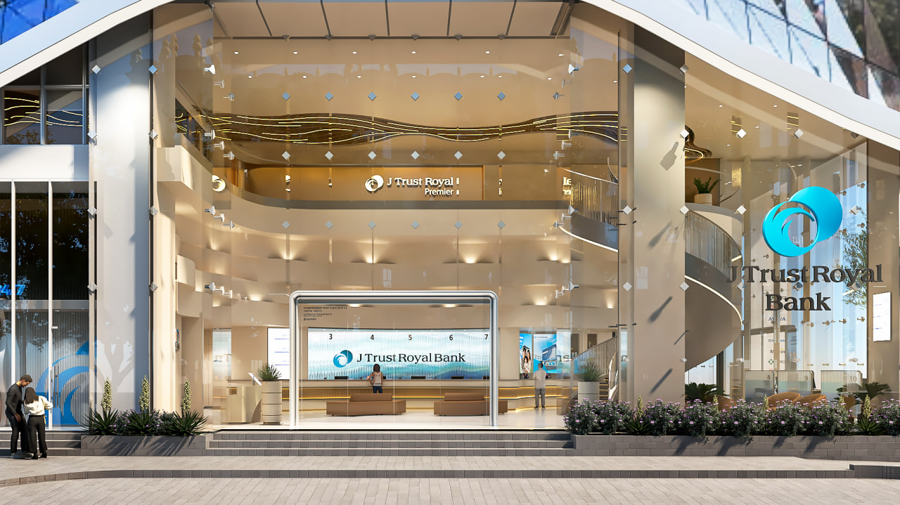 រចនាផ្នែកខាងក្នុងភ្ជាប់ជាមួយបេតិកភណ្ឌជាតិ៖ លំហូរទឹកនៃទន្លេមេគង្គ ស្ថាបត្យកម្មដ៏ថ្មីសន្លាងនៃ រូបរាងការិយាល័យកណ្ដាល និងសាខាថ្មីរបស់ធនាគារ ជេ ត្រាស់ រ៉ូយ៉ាល់ បានទទួលឥទ្ធិពលពី ចលនាលំហូរទឹកនៃទន្លេមេគង្គ ដែលជានិមិត្តរូបនៃជីវិត ការតភ្ជាប់ និងកម្លាំងហូរយ៉ាងសស្រាក់សស្រាំកាត់ទូទាំងតំបន់។ ហូរជាមួយទំនុកចិត្ត គឺជាទស្សនគោលសម្រាប់គំនិតរចនានៃស្ថាបត្យកម្មនេះ ដែលប្រដូចនឹងចលនាទឹកទន្លេមេគង្គដែលហូរទៅមុខឥតឈប់ឈរ ដើម្បីជ្រោមជ្រែងសហគមន៍ទៅរកភាពរីកចម្រើន។ សរសៃខ្សែទឹកហូរត្រូវបានរំលេចឡើងនៅលើការរចនាពិដានខាងក្នុង ដែលជាចំណុចចាប់ផ្ដើម និងជាទិសដៅសញ្ញានាំលោកអ្នកទៅកាន់សាលអតិថិជន Premier ហើយត្របាញ់បញ្ចូលគ្នាក្នុងទិសដៅតែមួយ ប្រដូចទៅនឹងដំណើរឆ្ពោះទៅមុខសម្រាប់ភាពរីកចម្រើននៃហិរញ្ញវត្ថុ ប្រកបដោយភាពរឹងមាំ ភាពបត់បែន អភិបាលកិច្ចប្រកបដោយភាពឈ្លាសវៃ ដែលជាមូលដ្ឋានគ្រឹះនៃភាពជោគជ័យយូរអង្វែង។