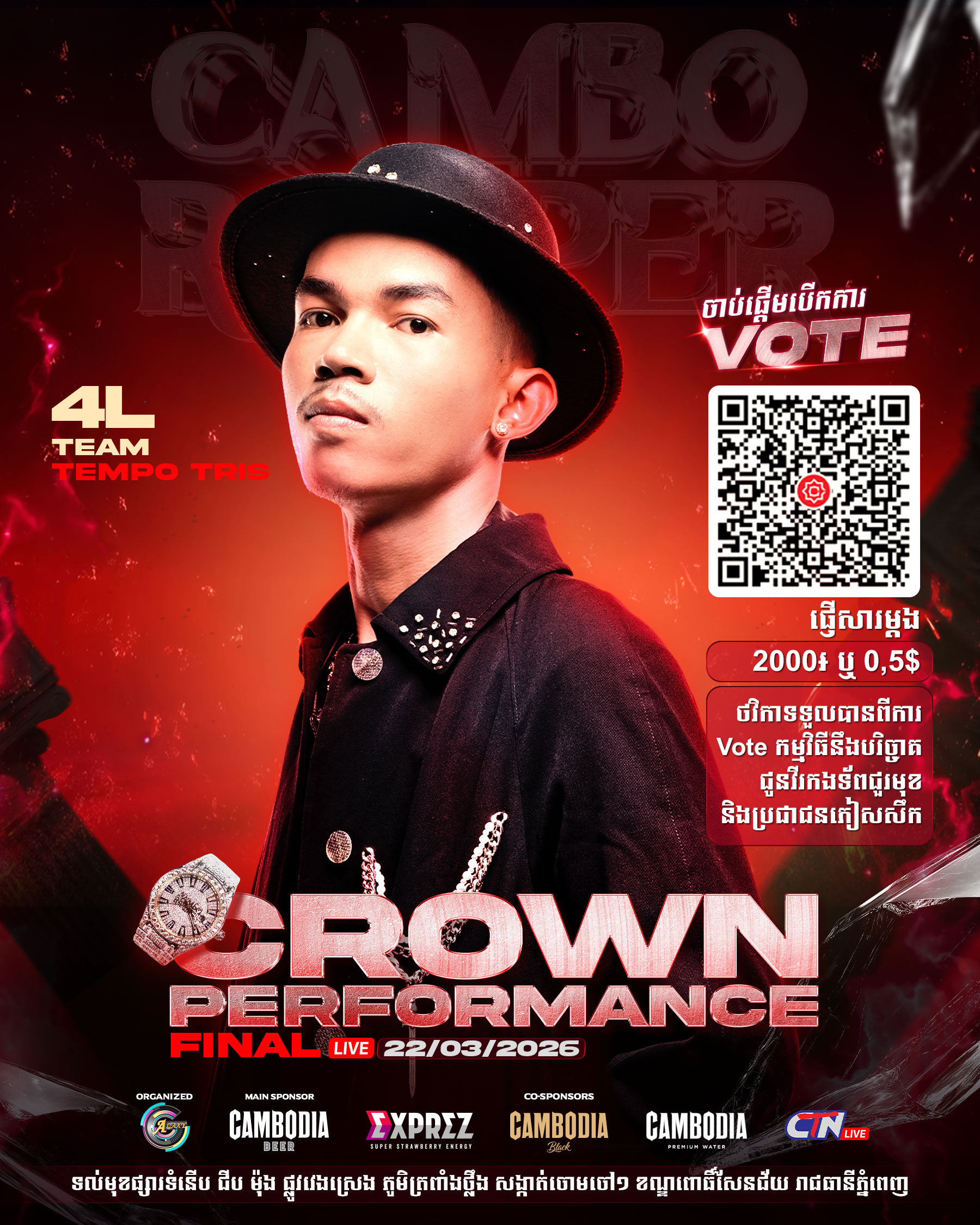 សល់តែប៉ុន្មានថ្ងៃទៀត ដល់ថ្ងៃប្រកួតផ្តាច់ព្រ័ត្រកម្មវិធីប្រឡងចម្រៀងរ៉េប CAMBO RAPPER ហើយ កំដៅក៏ចាប់ផ្តើមក្តៅជាងមុនដែរ ដូចដែលមហាជនបានឃើញស្រាប់ ឆ្លងកាត់ការប្រកួត និងការហ្វឹកហាត់យ៉ាងស្វិតស្វាញនាពេលកន្លងមក មានទាំងទឹកភ្នែក រន្ធត់ និងញើសស្រក់ពេញឆាកនៅលើសមរភូមិ CAMBO RAPPER រហូតរើសបានបេក្ខជនដ៏មានទេពកោលស្យ និងសុទ្ធតែជាជើងខ្លាំងចំនួន ៤រូប ដើម្បីបន្តឡើងទៅវគ្គផ្តាច់ព្រ័ត្រ ដែលត្រៀមនឹងរៀបចំឡើងនៅថ្ងៃទី២២ ខែមីនា ឆ្នាំ២០២៦ នៅទល់មុខផ្សារទំនើប ជីបម៉ុង ផ្លូវវេងស្រេង ភូមិត្រពាំងថ្លឹង សង្កាត់ចោមចៅ១ ខណ្ឌពោធិ៍សែនជ័យ។ កុំភ្លេចចូលរួមគាំទ្របេក្ខជន Top4 CAMBO RAPPER ឱ្យបានច្រើនដើម្បីជាកម្លាំងចិត្តដល់ពួកគេ។