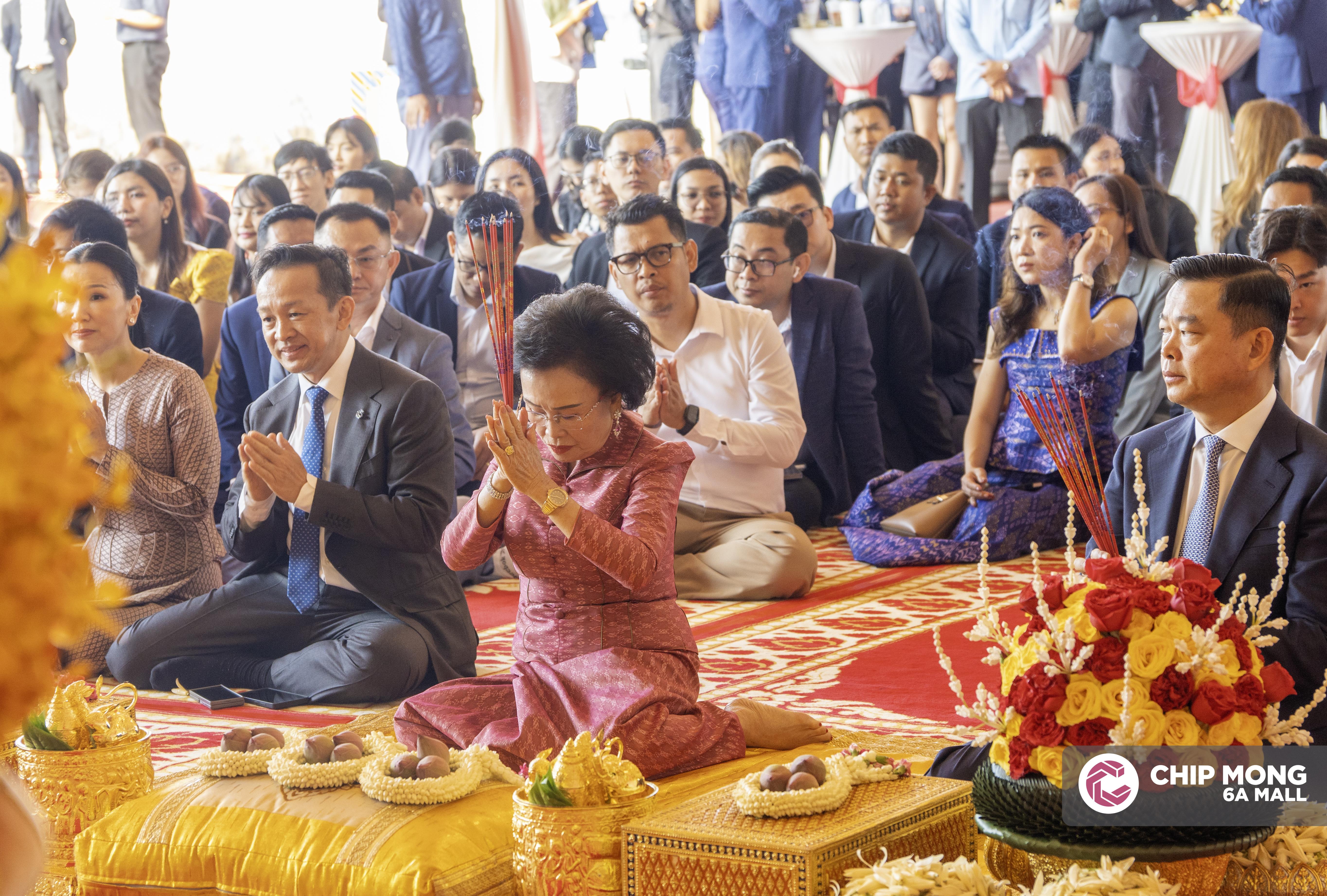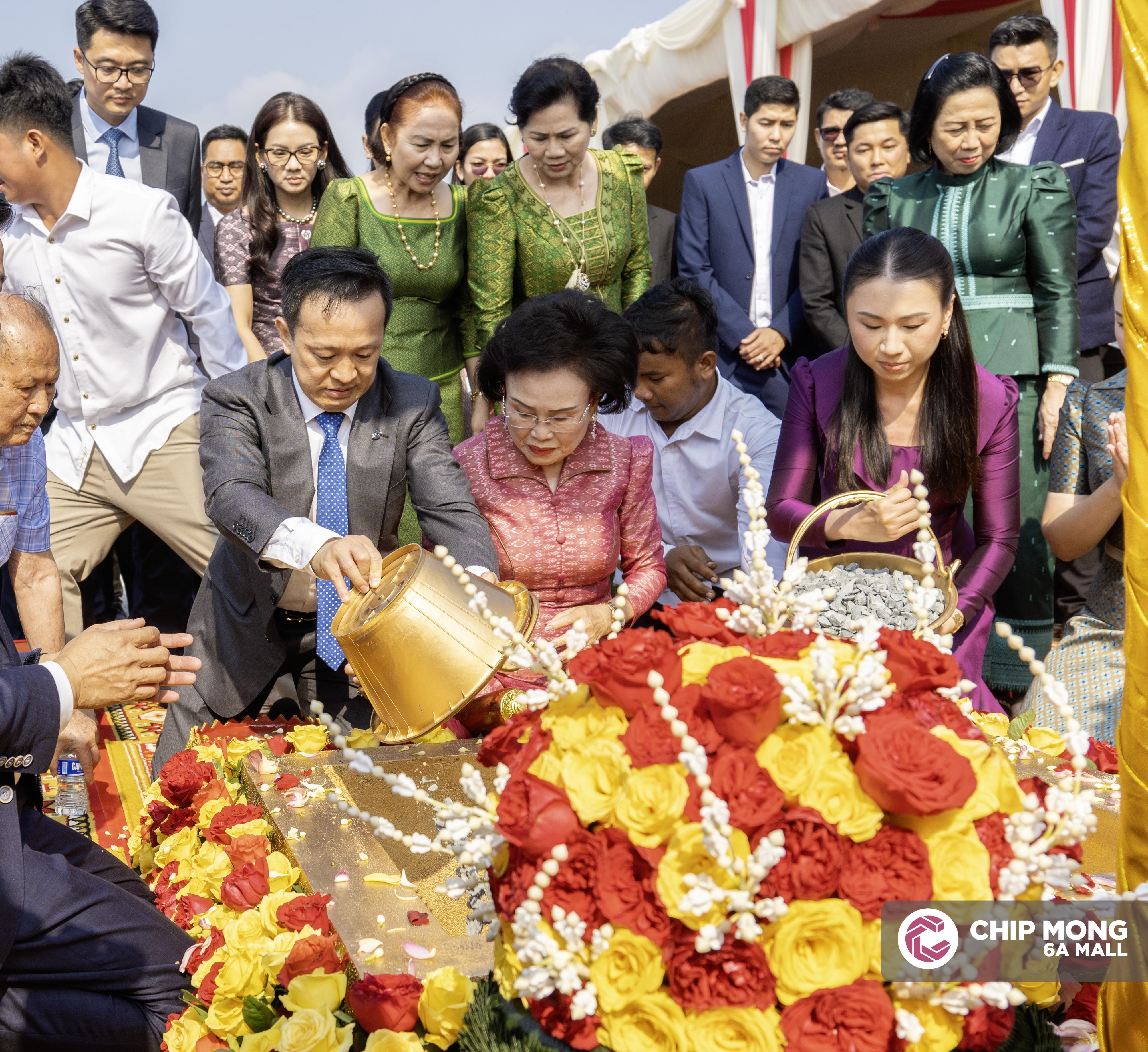 ពិធីបញ្ចុះបឋមសិលានេះ ត្រូវបានប្រព្រឹត្ដទៅក្រោមអធិបតីភាពរបស់លោកអ្នកឧកញ៉ា ភាព ហៀក ស្ថាបនិកក្រុមហ៊ុន ជីប ម៉ុង លោកអ្នកឧកញ៉ា លាង ឃុន សហស្ថាបនិក ក្រុមហ៊ុន ជីប ម៉ុង អ្នកឧកញ៉ា លាង ម៉េង សហស្ថាបនិក ក្រុមហ៊ុន ជីប ម៉ុង អ្នកឧកញ៉ា លាង ហួង (ហេនរី) អគ្គនាយកពហុពាណិជ្ជកម្ម ក្រុមហ៊ុន ជីប ម៉ុង លែន លោកស្រី គឹម ចាន់ណា សមាជិកក្រុមប្រឹក្សាភិបាលក្រុមហ៊ុន ជីប ម៉ុង លោកស្រី លី សុខឆេង នាយិកាក្រុមហ៊ុន ជីប ម៉ុង រីថែល និងលោកស្រី គីម ចាន់ថា អគ្គនាយិការក្រុមហ៊ុន ជីប ម៉ុង ត្រេឌីង ព្រមទាំងថ្នាក់ដឹកនាំជាន់ខ្ពស់របស់ក្រុមហ៊ុនជាច្រើនរូបទៀត។