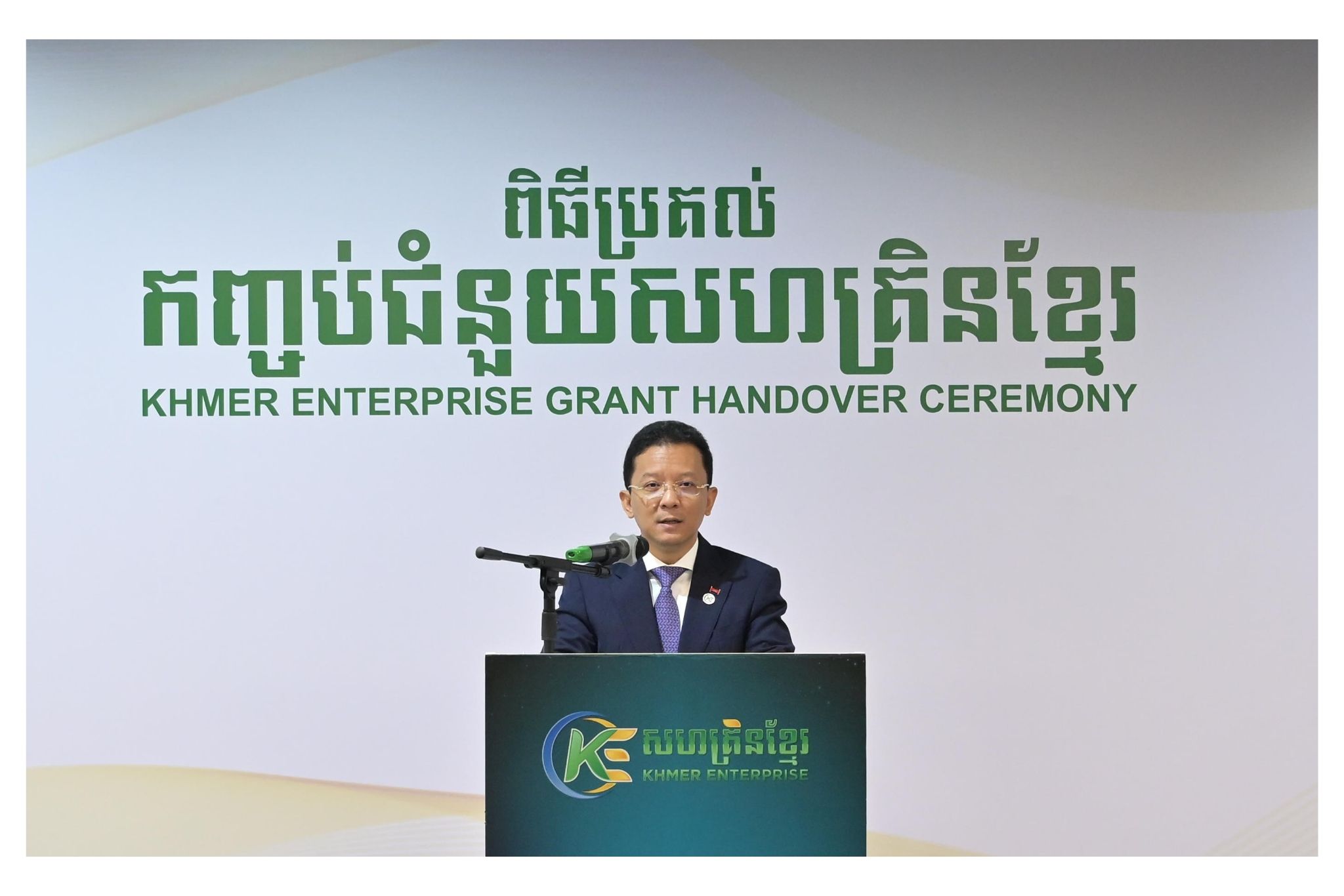 លោកបណ្ឌិត ឈៀង វណ្ណមុនិណ្ឌ ប្រតិភូរាជរដ្ឋាភិបាលទទួលបន្ទុកជានាយកប្រតិបត្ដិ សហគ្រិនខ្មែរ បានបញ្ជាក់ពីកិច្ចខិតខំប្រឹងប្រែងរបស់រាជរដ្ឋាភិបាល ក្នុងការលើកកម្ពស់ប្រព័ន្ធអេកូឡូស៊ី សហគ្រិនភាពដ៏រឹងមាំ និងធន់ ដោយលើកឡើងថាជំនួយហិរញ្ញវត្ថុដោយផ្ទាល់នេះឆ្លុះបញ្ចាំងពី ការប្តេជ្ញាចិត្តរបស់សហគ្រិនខ្មែរក្នុងការលើកកម្ពស់ភាពប្រកួតប្រជែងអាជីវកម្ម និងពង្រីកលទ្ធភាព ចូលទៅកាន់ទីផ្សារ។