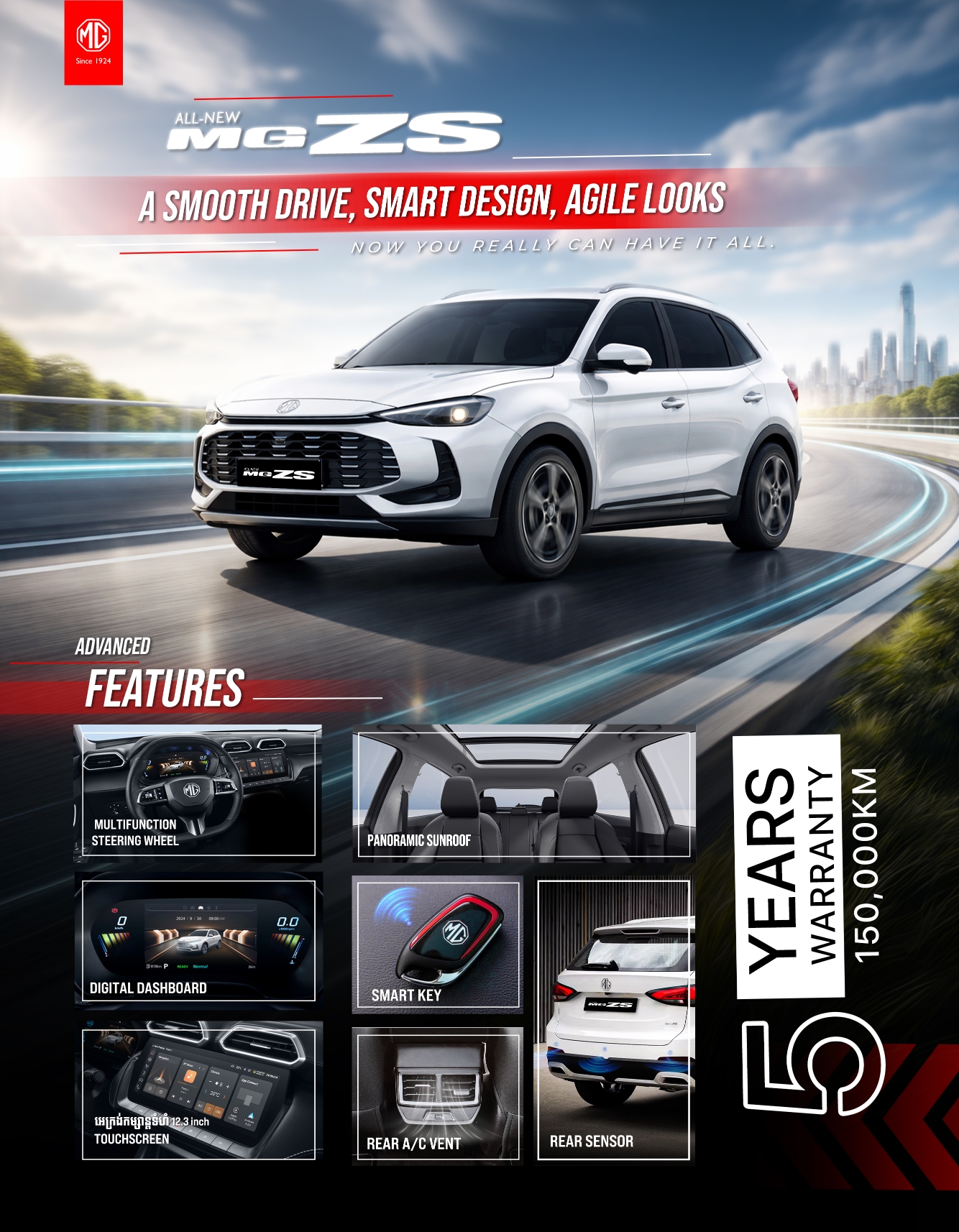 ទន្ទឹមនឹងនេះ រថយន្តប្រភេទអគ្គិសនីរបស់ MG ក៏កំពុងទទួលបានការចាប់អារម្មណ៍យ៉ាងខ្លាំង លើម៉ូឌែល MG Cyberster ប្រភេទរថយន្តស្ព័រទ្វារ២ដែលតំណាងឱ្យចក្ខុវិស័យដ៏រីកចម្រើននិងនិមិត្តសញ្ញានៃរថយន្តបែបអនាគតដែលបង្ហាញពីបច្ចេកវិទ្យាអគ្គិសនីដ៏ទំនើបចុងក្រោយ ជាមួយការផ្តល់ជូនតម្លៃកាន់តែពិសេស $6x,xxx ប៉ុណ្ណោះ។