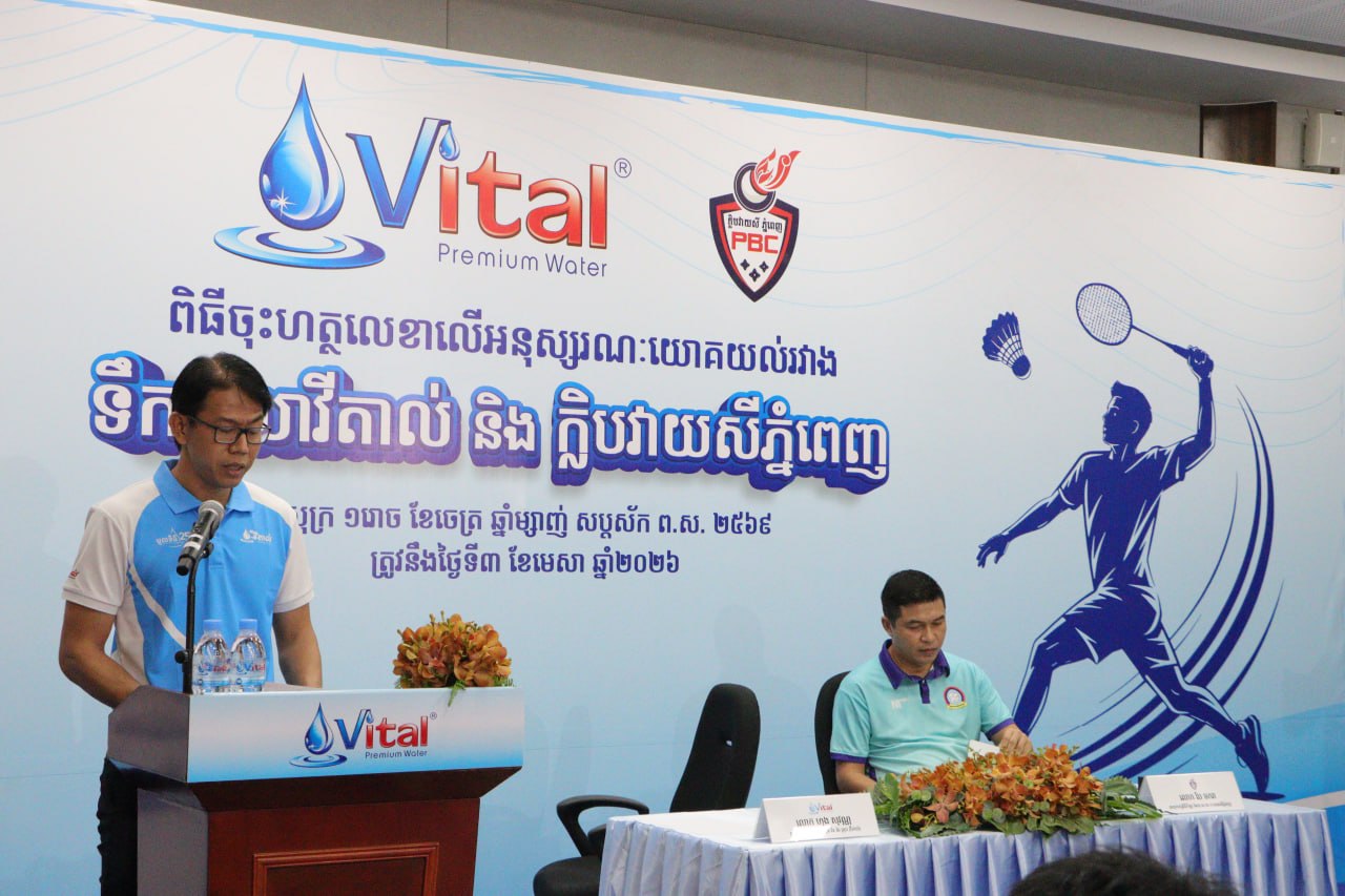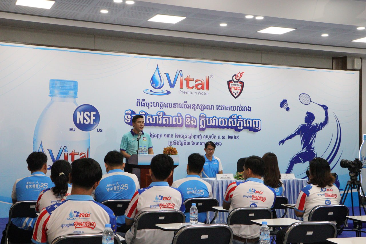 (ភ្នំពេញ)៖ នៅថ្ងៃទី៣ ខែមេសា ឆ្នាំ២០២៦ ទឹកពិសាវីតាល់ និងក្លិបវាយសីភ្នំពេញ បានចុះហត្ថលេខាលើអនុស្សរណៈយោគយល់ (MOU) ដើម្បីលើកកម្ពស់សុខភាព សាមគ្គីភាព និងអភិវឌ្ឍធនធានយុវជន តាមរយៈសកម្មភាពកីឡា ។ ពិធីនេះមានការចូលរួមពីលោក ហុង សុវណ្ណ ប្រធានធុរកិច្ច ក្រុមហ៊ុន វ័ន ម៉រ គ្រុប (វីតាល់) និងលោក បែ មករា នាយកកម្មវិធីកីឡា នៃស.ស.យ.ក រាជធានីភ្នំពេញ ។