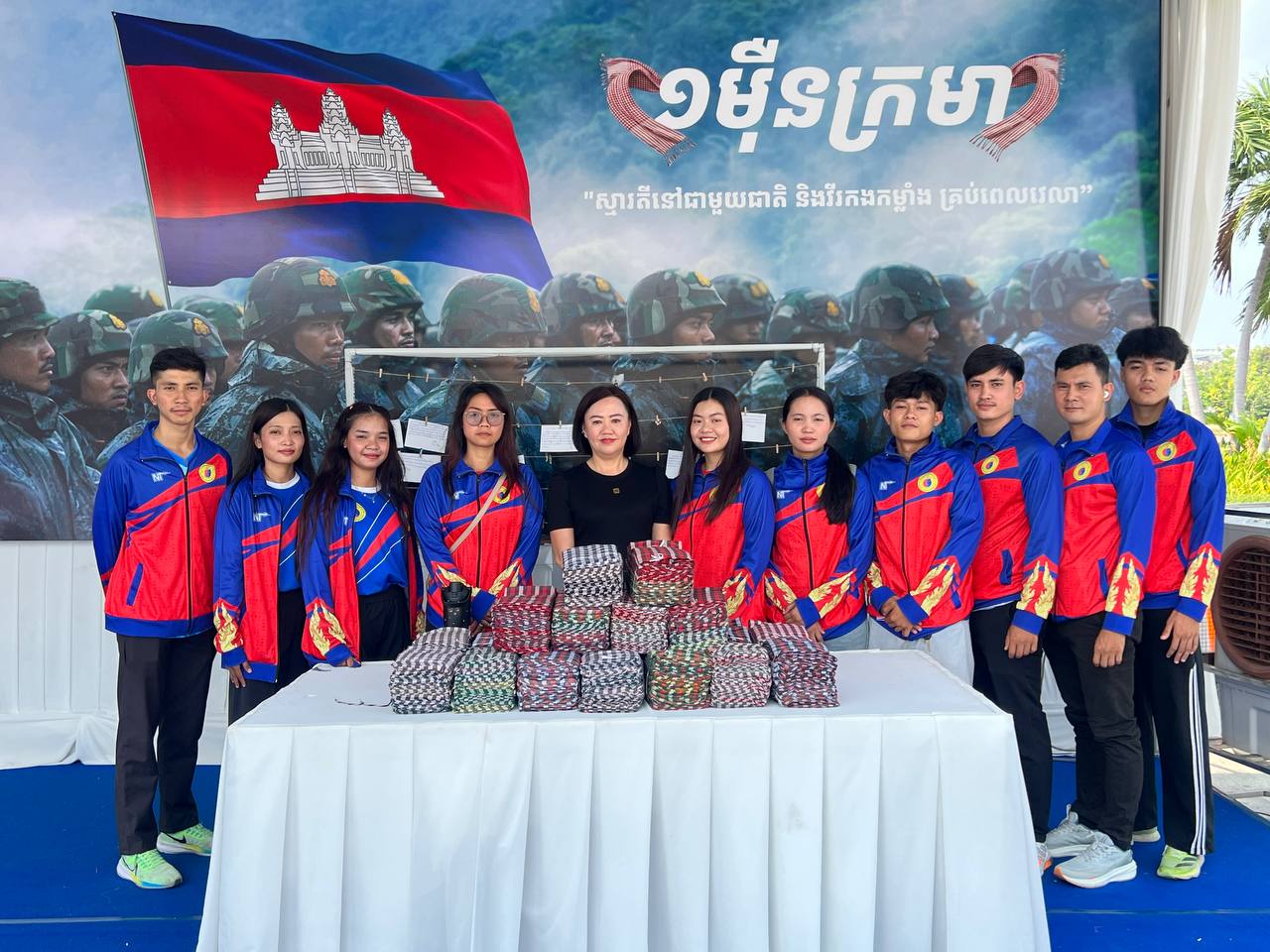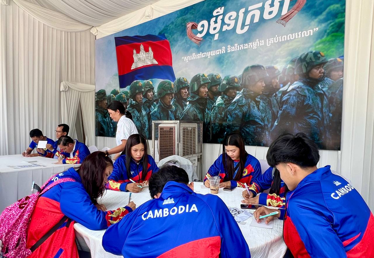 គួរដឹងថា យុទ្ធនាការ «១ម៉ឺនក្រមា ១ម៉ឺនសារជូនពរ ដើម្បីវីរៈកងកម្លាំងជួរមុខ» ដែលរៀបចំដោយសហភាពសហព័ន្ធយុវជនកម្ពុជា ធ្វើឡើងពីថ្ងៃទី១៩ ខែមីនា ដល់ថ្ងៃទី០៧ ខែមេសា ឆ្នាំ២០២៦ នៅសួនច្បារវត្តបទុមវតី ដែលជាវេទិកាសាធារណៈមួយ សម្រាប់ប្រជាពលរដ្ឋគ្រប់រូប ក្នុងការបង្ហាញនូវក្ដីនឹករលឹក និងការចងចាំជានិច្ចនូវគុណបំណាច់ដ៏ធំធេងរបស់វីរៈកងកម្លាំងទាំងអស់ដែលបាន និងហ៊ានលះបង់ជីវិត សាច់ស្រស់ឈាមស្រស់ និងបន្តឈរជើងយ៉ាងរឹងមាំ ក្នុងបុព្វហេតុការពារជាតិមាតុភូមិដោយអង់អាចក្លាហានបំផុត៕