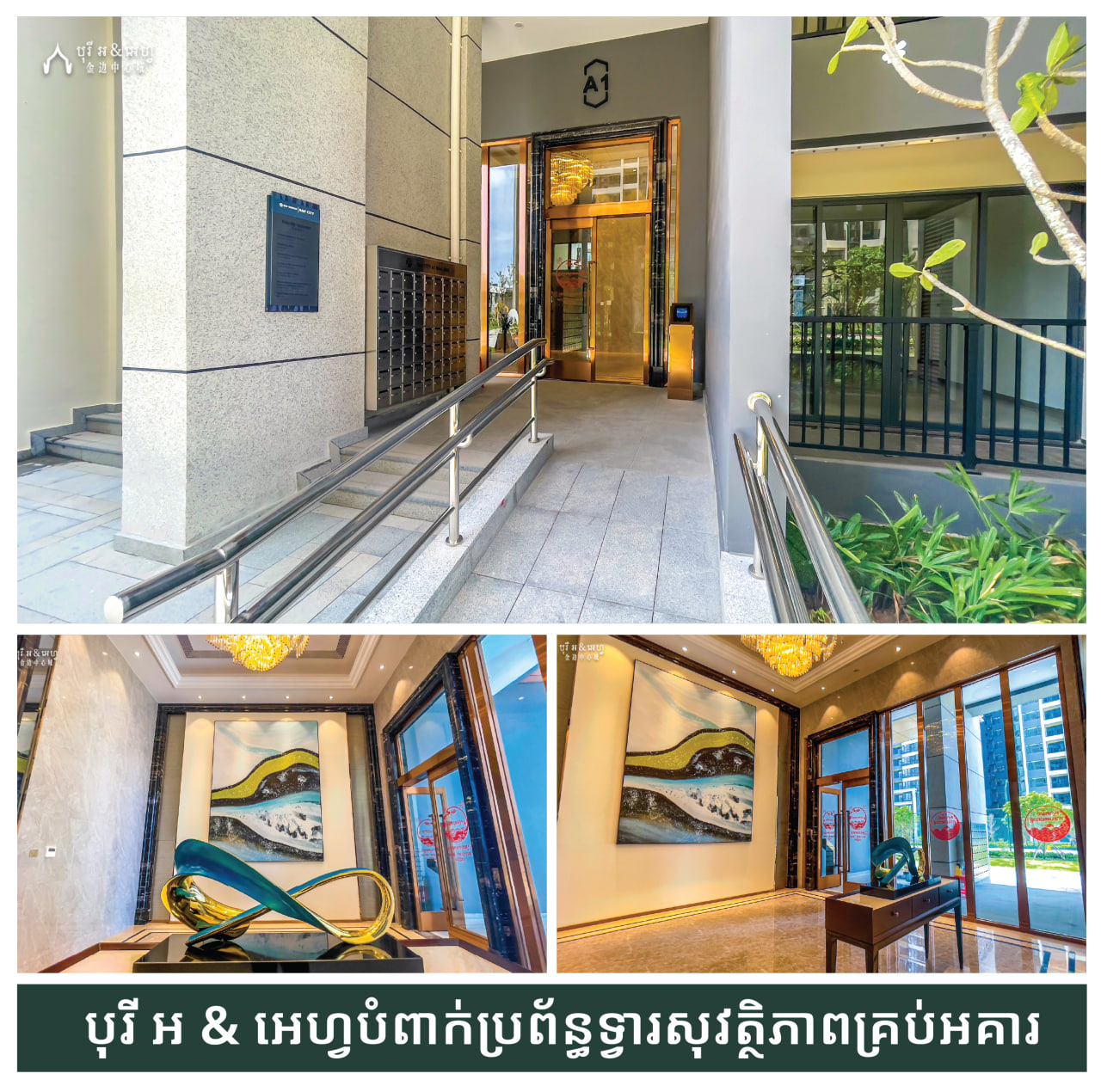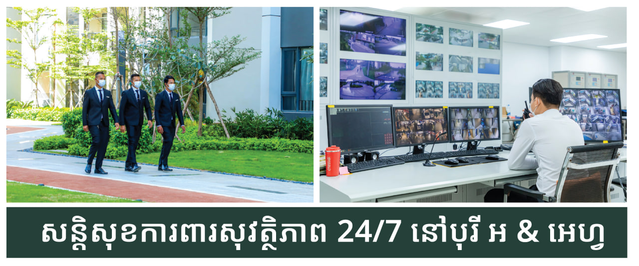 - កម្លាំងសន្ដិសុខប្រចាំការ ២៤ម៉ោង៖ ក្រុមការងារសន្តិសុខមានជំនាញខ្ពស់ និងមានបទពិសោធន៍ក្នុងការបំពេញភារកិច្ចច្បាស់លាស់ ដោយមានការដើរល្បាតពេញមួយថ្ងៃ និងដោះស្រាយបញ្ហាក្នុងស្ថានភាពបន្ទាន់ បានឆាប់រហ័សគ្រប់ស្ថានការ។