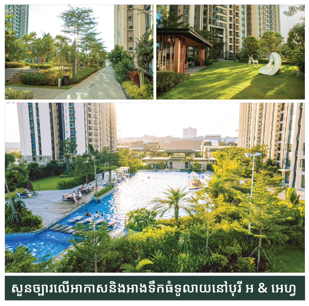 - សហគមន៍រស់នៅសម្រាប់គ្រប់វ័យ៖ មានសួនឯកជនទំហំជិត ៣ ម៉ឺនម៉ែត្រការ៉េ អាងហែលទឹកកំរិតស្តង់ដារអន្តរជាតិ ក្លឹបហាត់ប្រាណលំដាប់ខ្ពស់ និងគ្រឿងបរិក្ខារបំពាក់ពេញលេញ ដែលអនុញ្ញាតឱ្យអ្នករស់នៅប្រកបដោយសុវត្ថិភាព និងផាសុកភាព ដោយមិនចាំបាច់ចេញទៅក្រៅឡើយ។