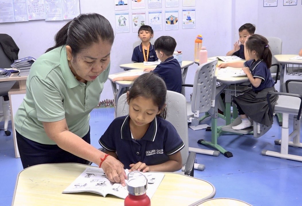 លោកស្រី Leigh Sauls៖ សិស្សរបស់យើងមិនមែនត្រឹមតែអង្គុយស្តាប់នោះទេ ប៉ុន្តែពួកគេត្រូវគិត ត្រូវចេះសួរសំណួរ និងចែករំលែកគំនិតយោបល់។ យើងជួយពួកគេឱ្យក្លាយជាអ្នកសិក្សាដែលមានភាពសកម្ម និងមានទំនុកចិត្ត។ យើងក៏យកចិត្តទុកដាក់ខ្ពស់លើសុខុមាលភាពរបស់សិស្ស ដើម្បីឱ្យពួកគេមានអារម្មណ៍ថាមានសុវត្ថិភាព ទទួលបានការគាំទ្រ និងមានភាពរីករាយ។ លោកគ្រូអ្នកគ្រូមានតួនាទីណែនាំសិស្សឱ្យចេះធ្វើការងារជាក្រុម និងចេះដោះស្រាយបញ្ហា ដែលនេះគឺជាការកសាងជំនាញសម្រាប់ទាំងការសិក្សា និងការរស់នៅក្នុងជីវិតជាក់ស្តែង។