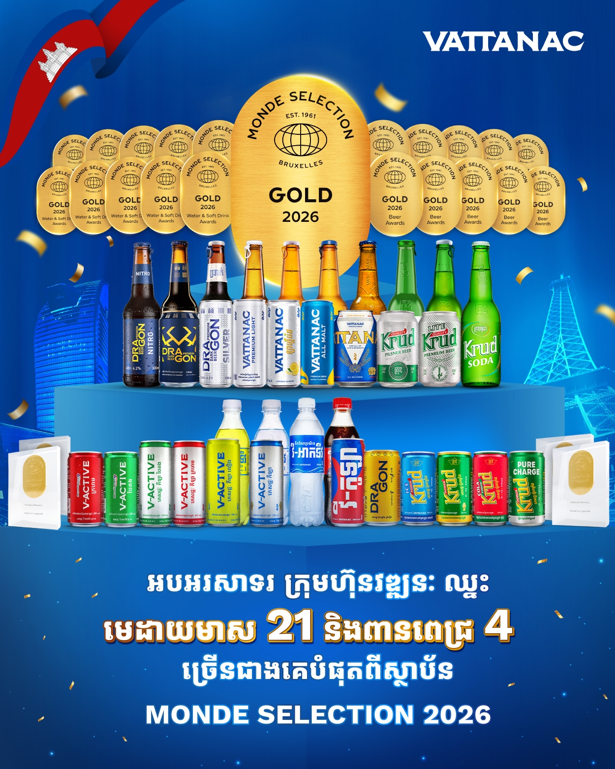 មិនមែន២ មិនមែន១០! ក្រុមហ៊ុន វឌ្ឍនៈ ឈ្នះមេដាយមាសច្រើនបំផុតចំនួន ២១ ពានរង្វាន់ ពេជ្រ ចំនួន ៤ សម្រាប់ឆ្នាំ២០២៦ មិនធ្លាប់មានក្នុងប្រវត្តិសាស្រ្តប្រទេសកម្ពុជា និងស្ថាប័ន Monde Selection